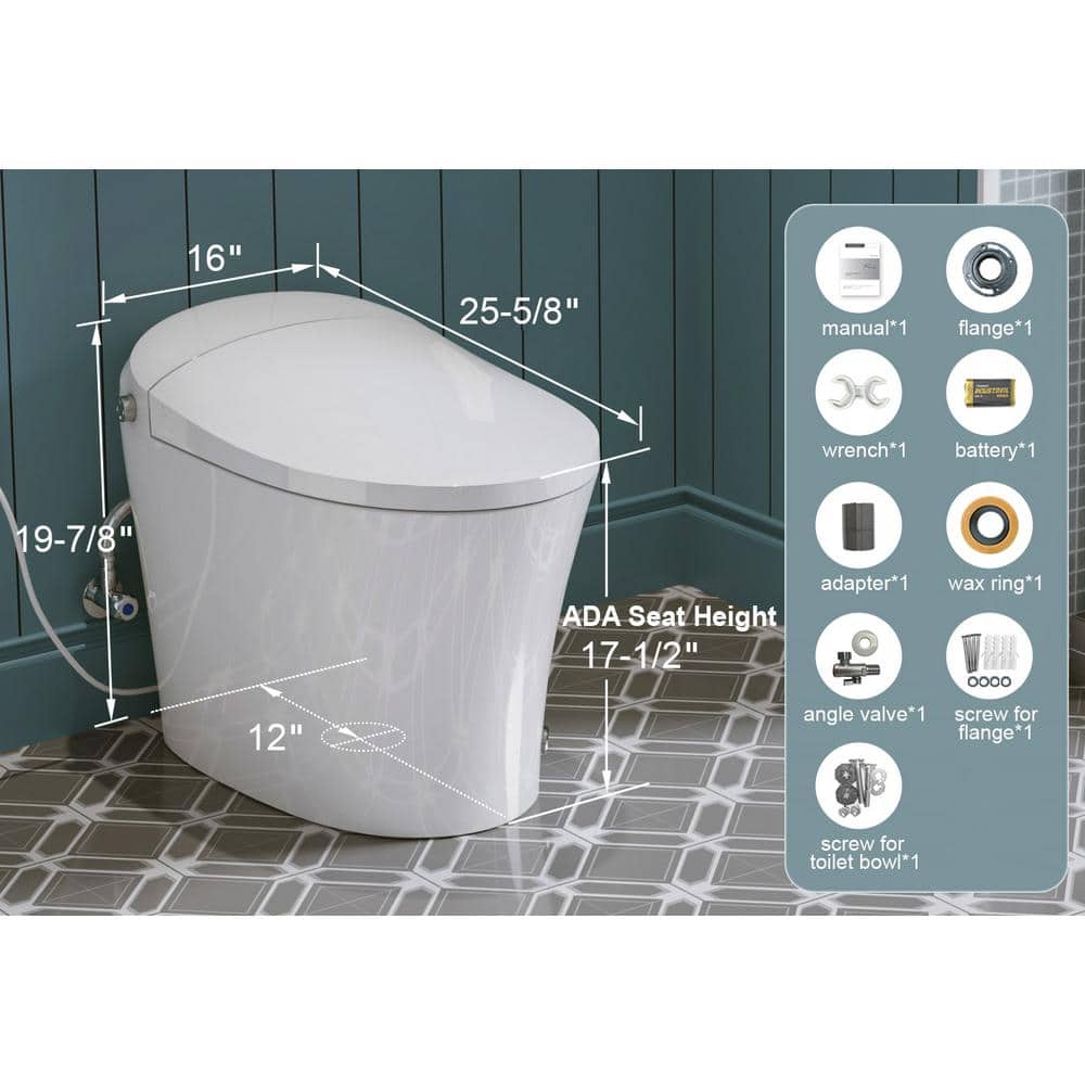 HOROW 1.27 GPF Tankless Elongated Smart Bidet Toilet with ADA Seat Height