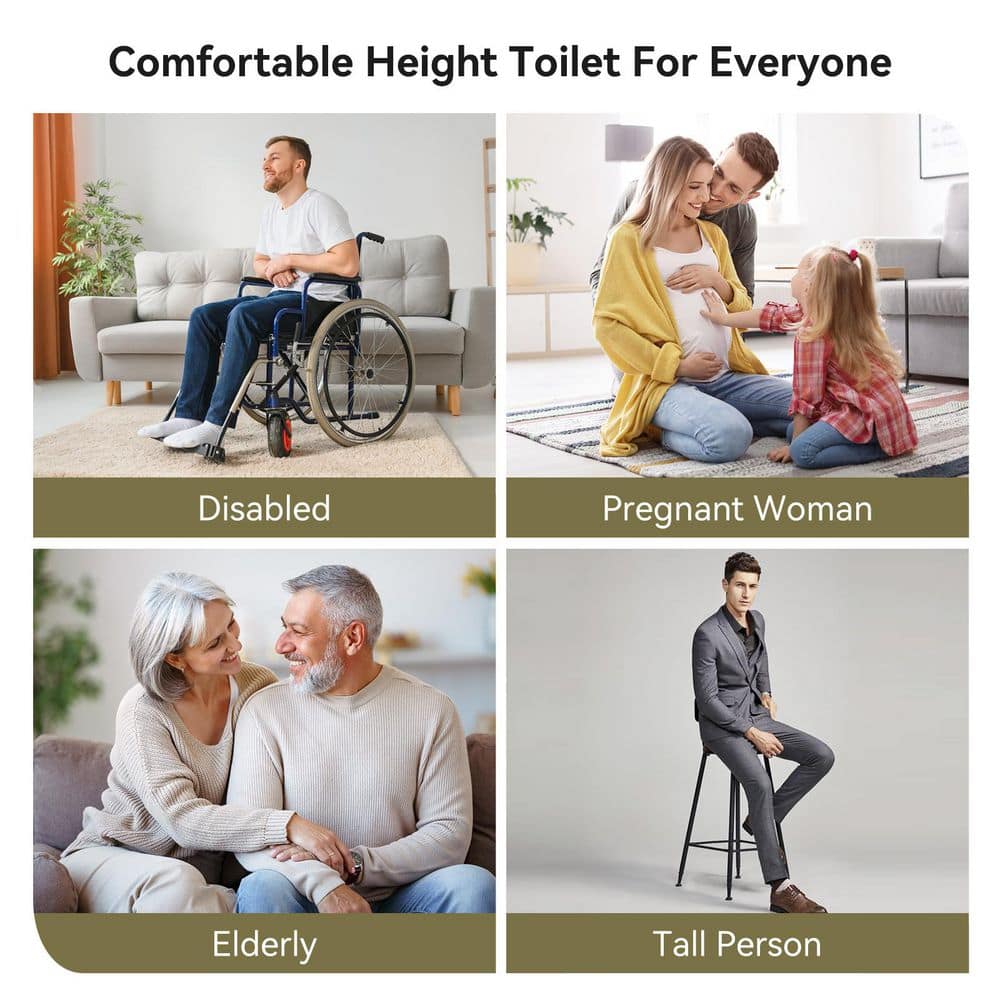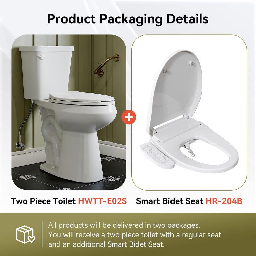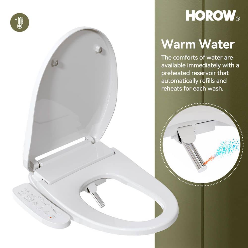 Experience unparalleled comfort with the HOROW 19 in. Tall High-Efficiency Toilet featuring a smart bidet seat. Crafted from durable vitreous china, this elongated, comfort height toilet is perfect for all ages, providing luxurious features like seat heating, warm water wash, and adjustable bidet functions, enhancing any modern bathroom setup.