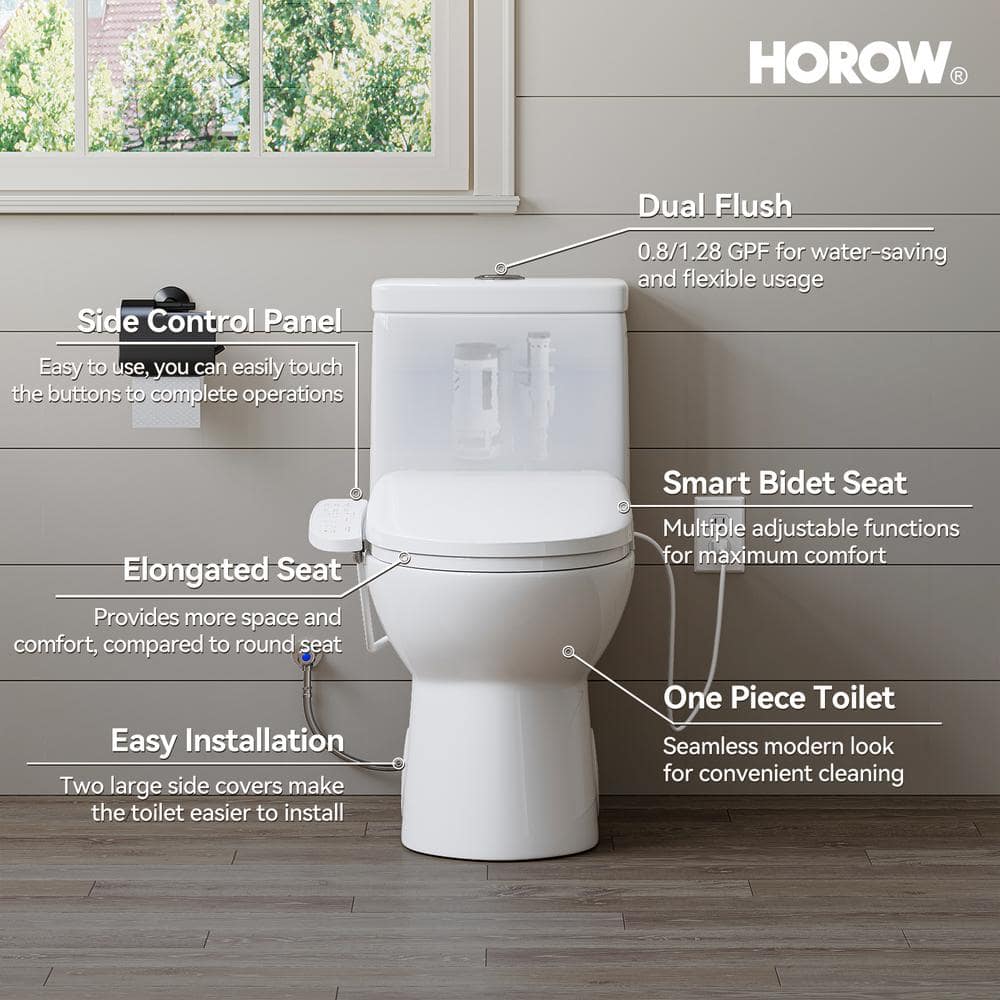 HOROW Elongated Bidet Toilet Dual Flush 0.8/1.28 GPF with Heated Seat
