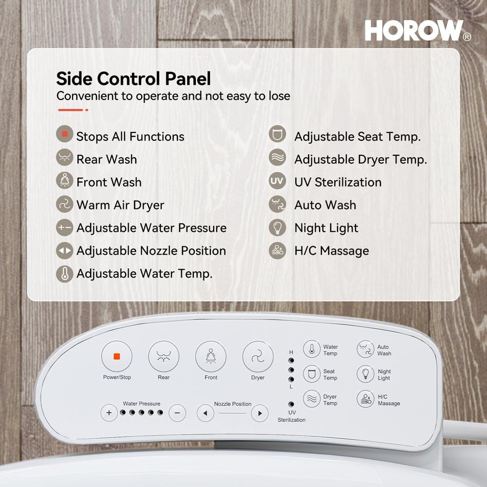 Upgrade to the perfect blend of style and smart technology with the HOROW Elongated Bidet Toilet and enhance your bathroom's comfort and efficiency today!