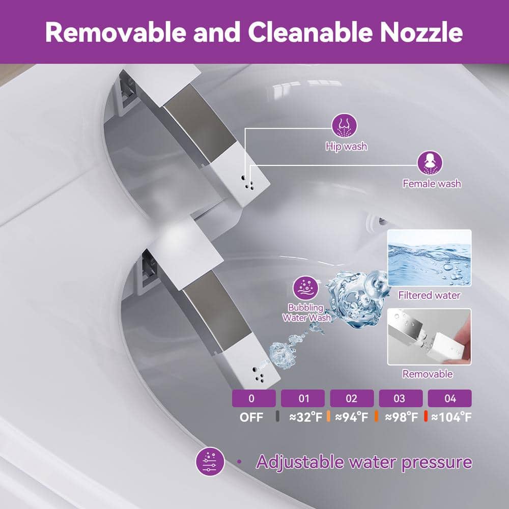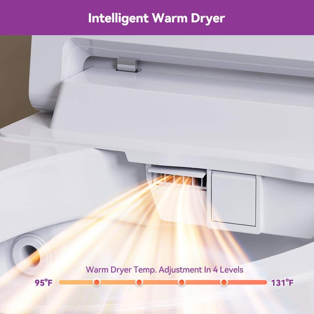 Features Adjustable Aerated Wash Spray,Adjustable Nozzle,Adjustable Sprayer Settings,Adjustable Water Pressure,Antimicrobial,Concealed Trapway,Feminine Wash,Heated,Integrated Bidet,Lighted,Posterior Wash,Pressure Assisted,Remote Control Operation,Self-Cleaning,Soft Close,Stainless Steel Nozzle,Warm Air Dryer,Warm Water Wash