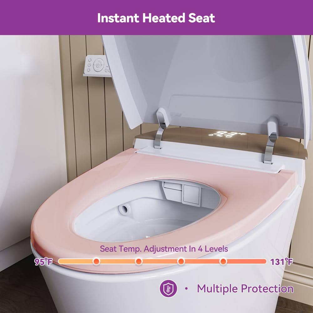 Elevate your bathroom experience with the HOROW Elongated Smart Bidet Toilet. Featuring a sophisticated rose gold backlid, this toilet combines sleek design with advanced technology. Enjoy comfort and convenience with features like remote control operation, heated seating, and powerful dual flush systems.