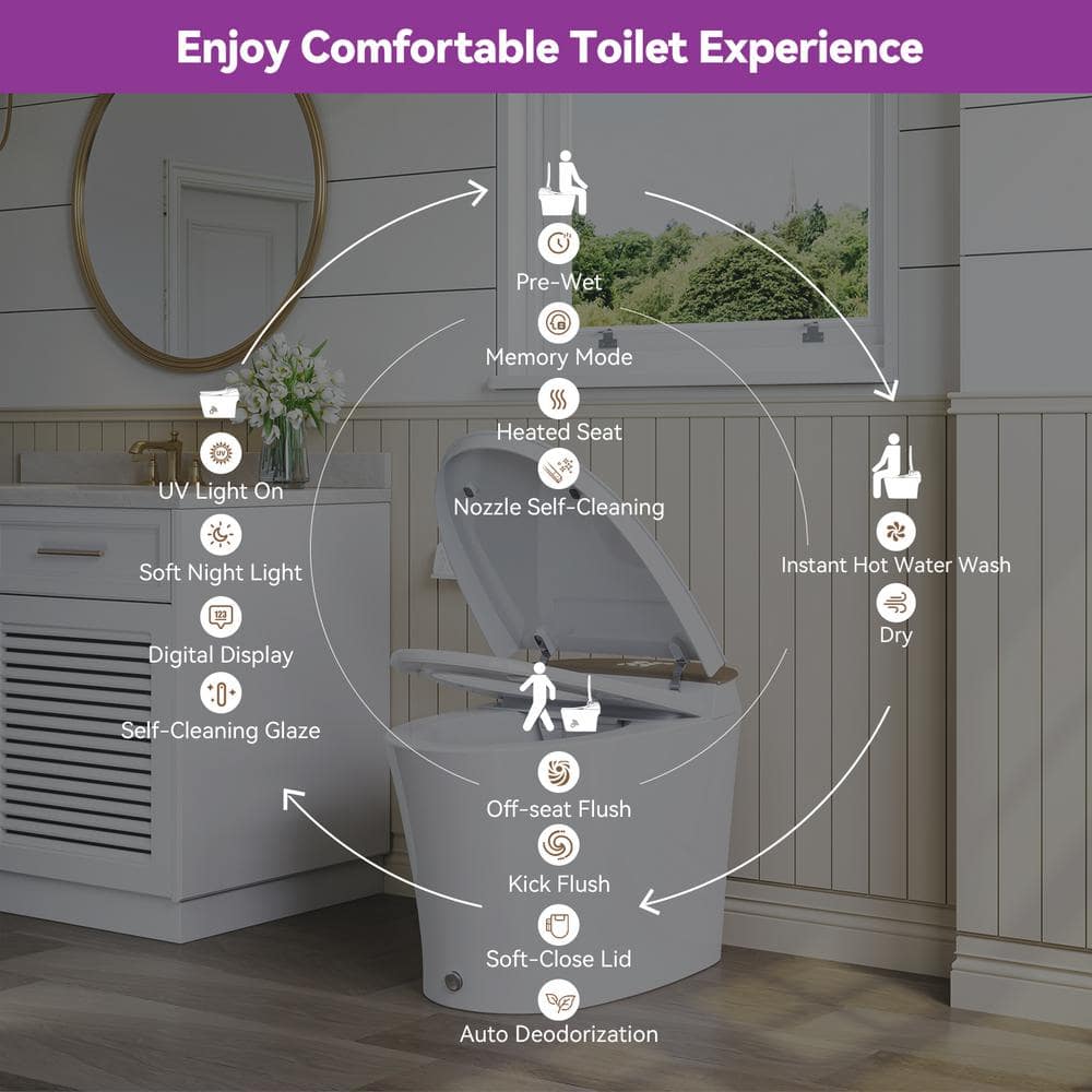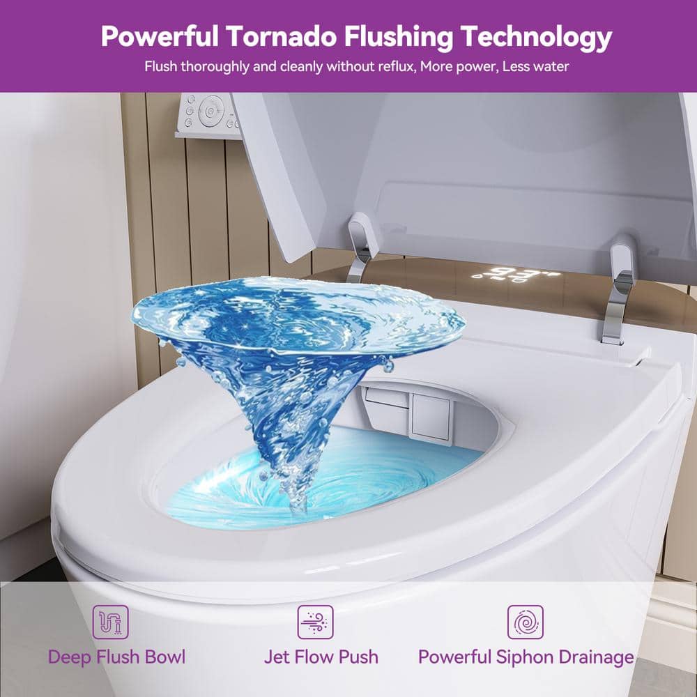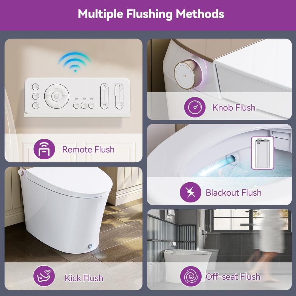 • Convenient Operation: Includes remote control and foot-kick flush for hands-free use.