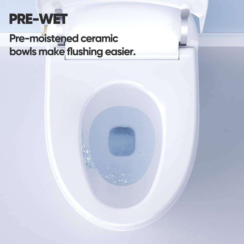 • Eco-Friendly Design: Uses minimal water per flush while reducing toilet paper waste