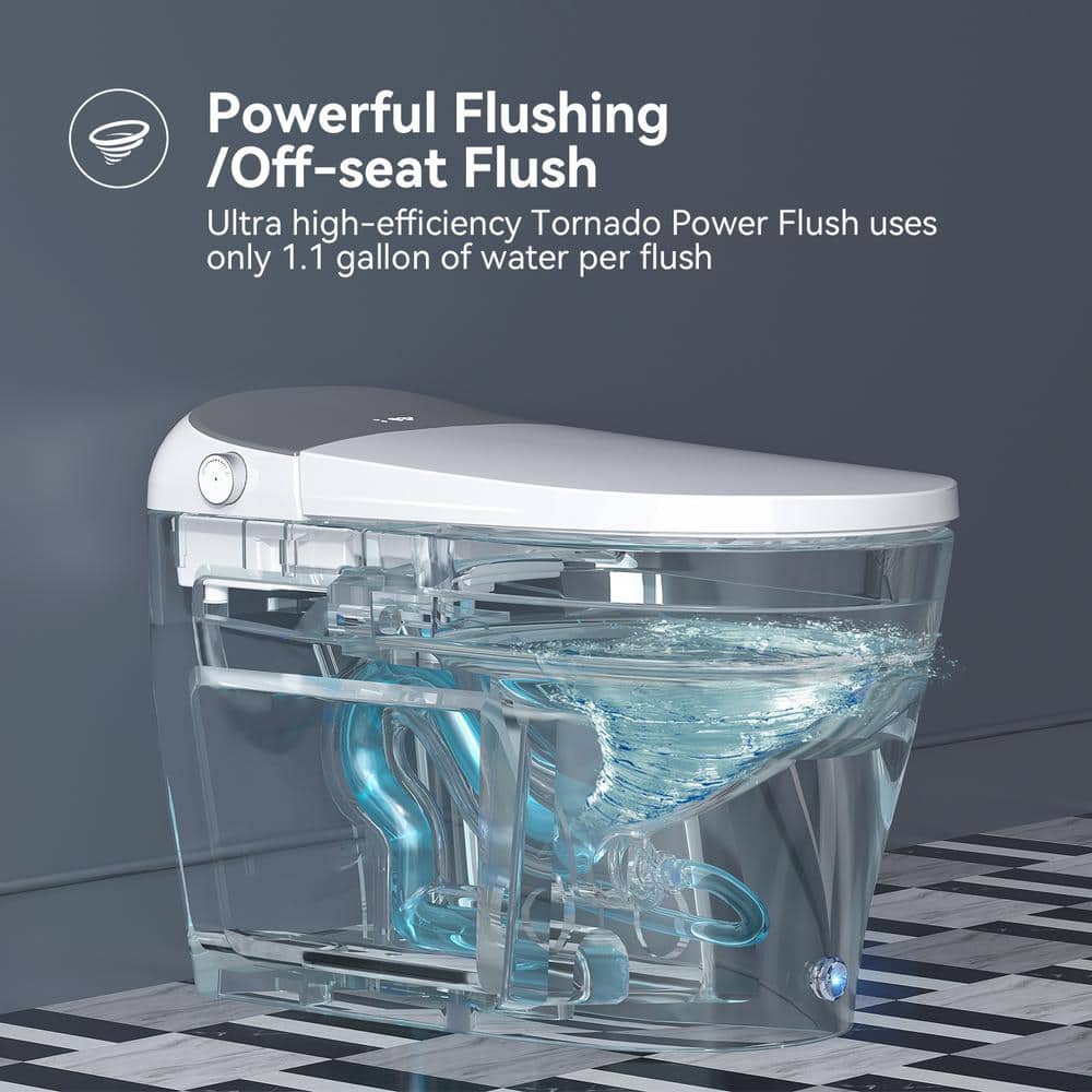 • Eco-Friendly Design: Tankless system with 1.1 GPF for efficient water use and energy saving.