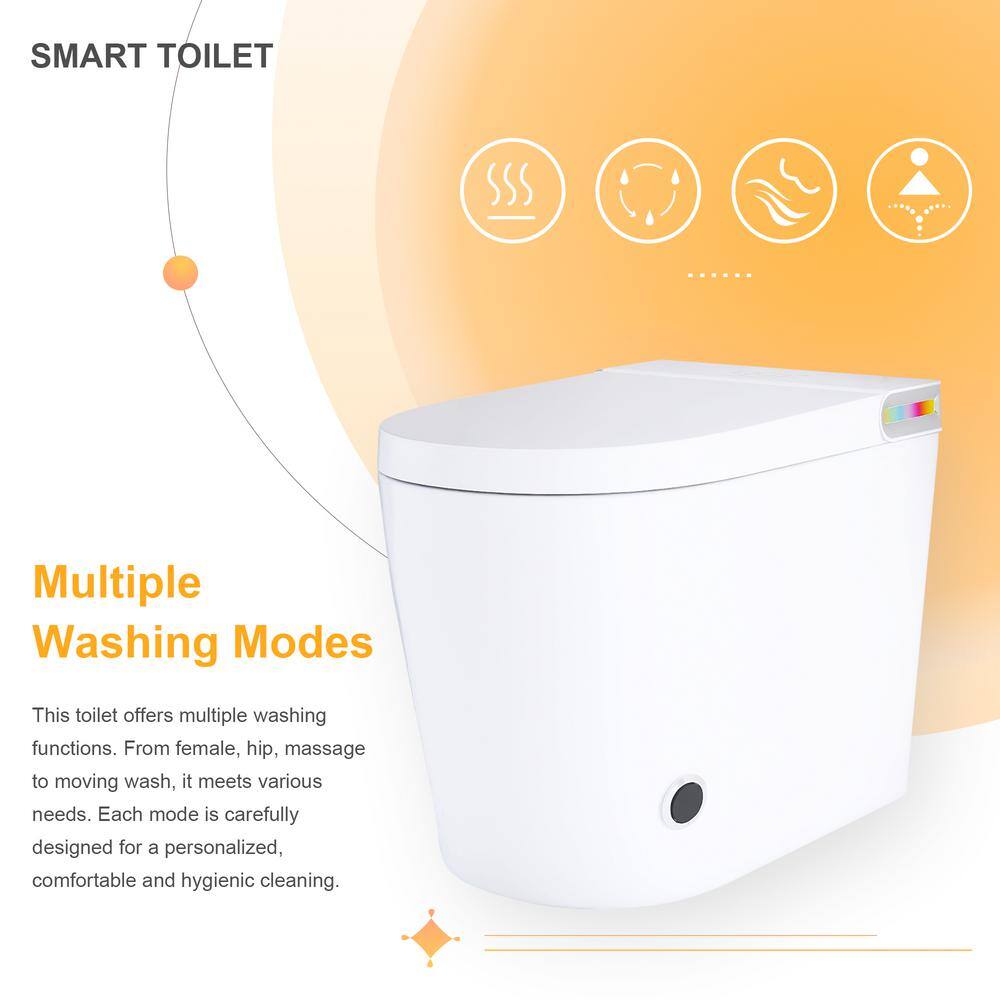 Upgrade your bathroom with the JimsMaison Elongated Smart Bidet Toilet, featuring state-of-the-art foot sensing technology for a hands-free experience. Enjoy customized cleansing with multiple washing modes and a built-in small water tank ensuring reliable performance. Sleek, modern design and automatic functionalities make this bidet toilet a must-have for ultimate hygiene and convenience.