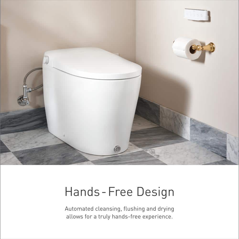 • Hands-Free Operation: Foot touch control for seat, lid, and flushing; includes automatic lid open/close and auto-flush features.