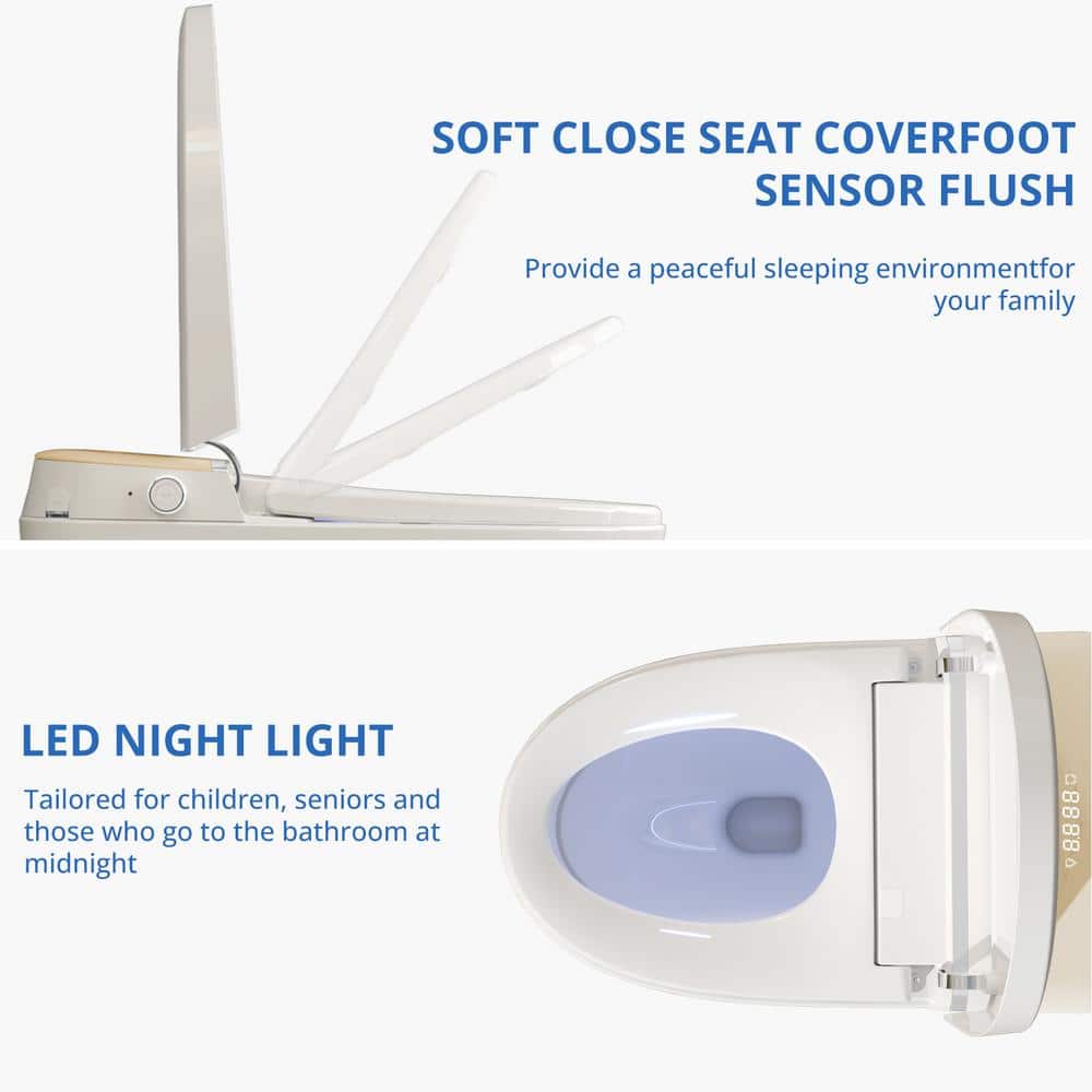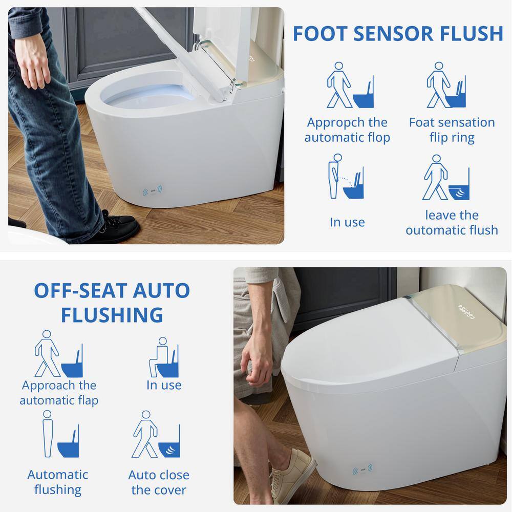 • Foot Sensor Technology: Provides touchless lid lifting and flushing for ultimate convenience.