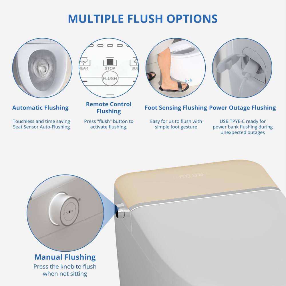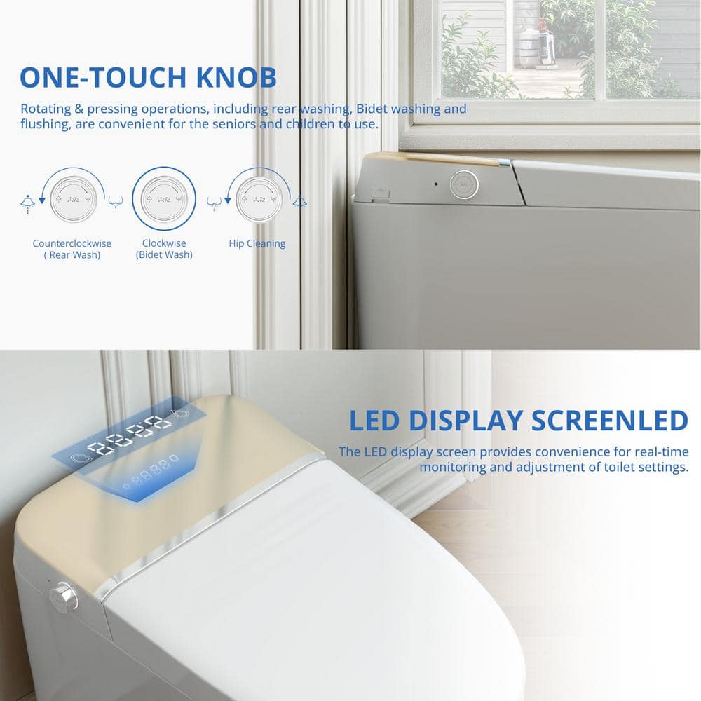 Relyblo Foot Sensing Elongated Bidet Toilet with Spa Spray - 1.27 GPF in Ivory Gold