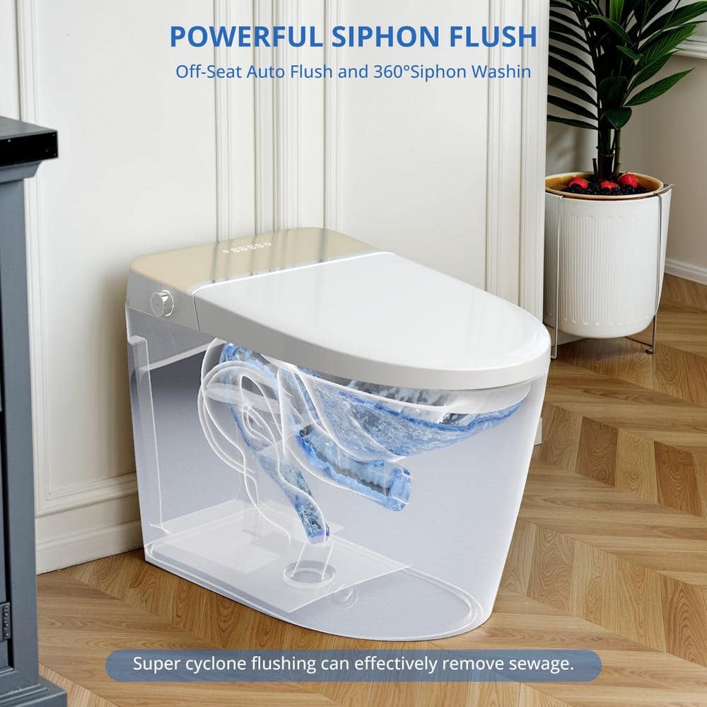 Immerse yourself in the luxury of Relyblo's Foot Sensing Elongated Bidet Toilet, as it transforms an ordinary bathroom into a serene spa sanctuary. Its exquisite Ivory Gold finish adds a layer of elegance, making it a centerpiece of refined taste. Through innovative design, it harmonizes technology with tranquility, perfect for a seamless morning routine. The delicate interplay between form and function makes this bidet toilet an indispensable luxury, elevating everyday living to a sublime experience.