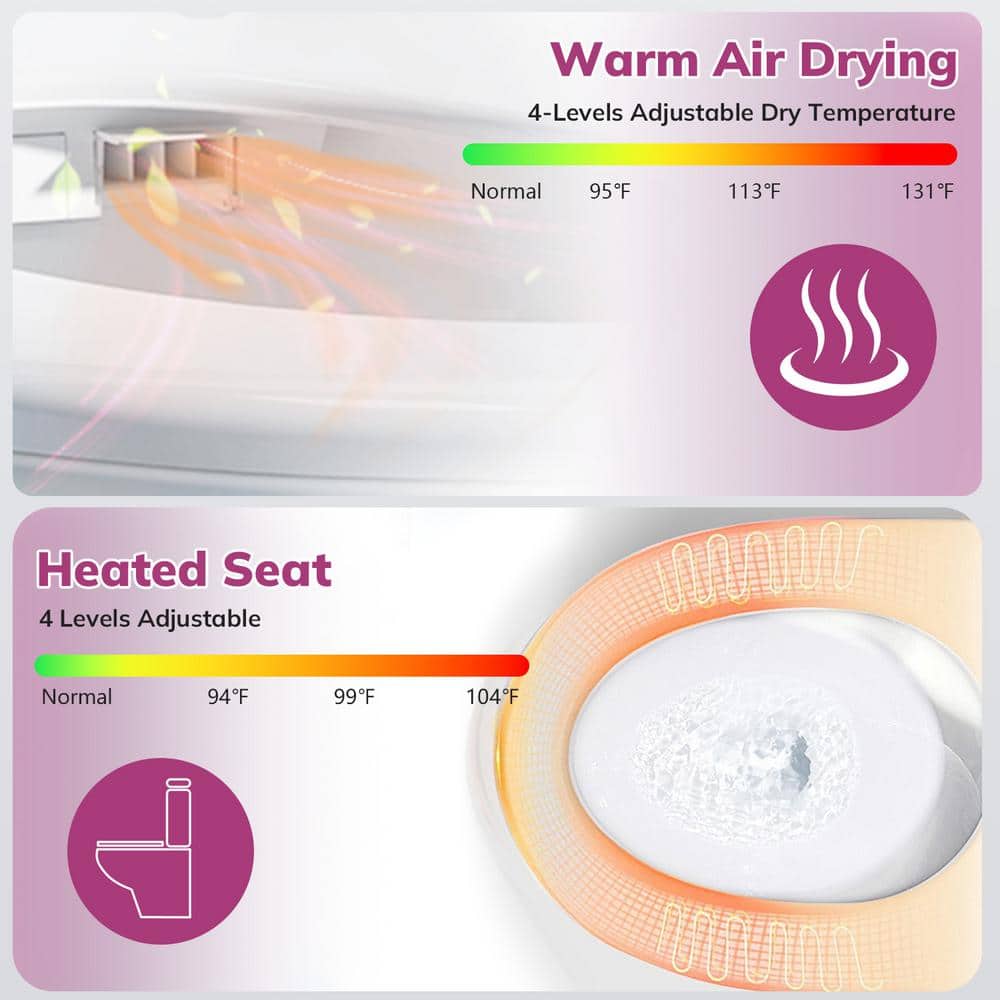 • Comfort Features: Offers warm water, heated seat, and warm air dryer for ultimate comfort.