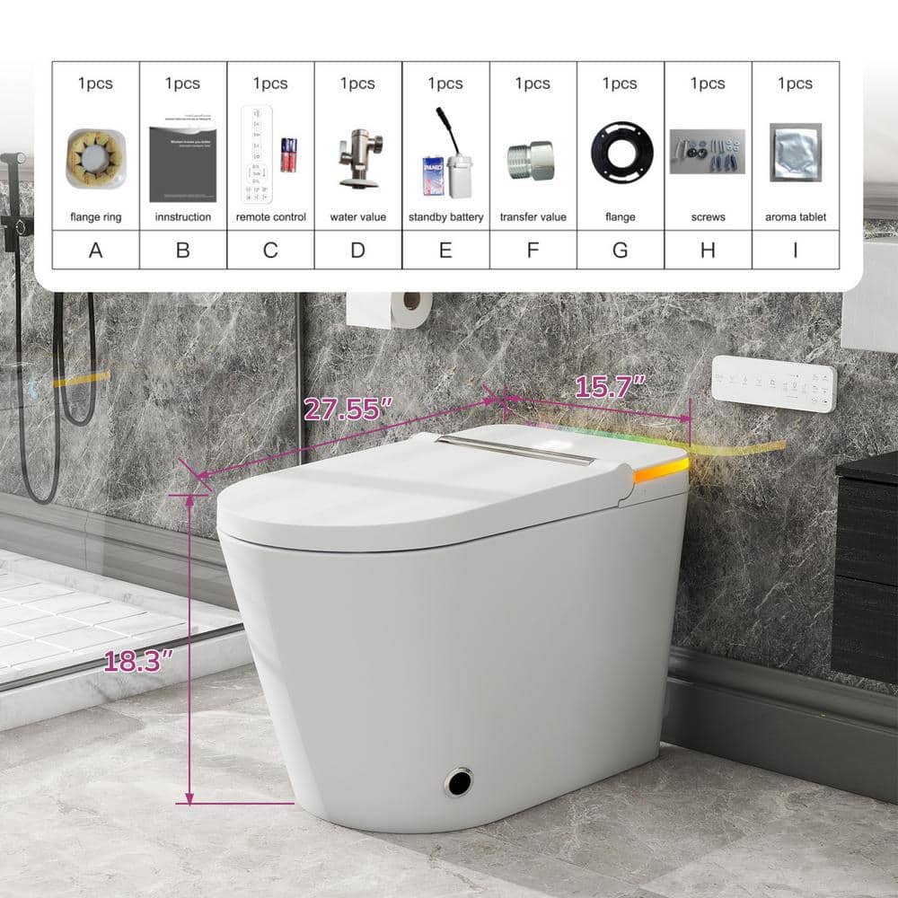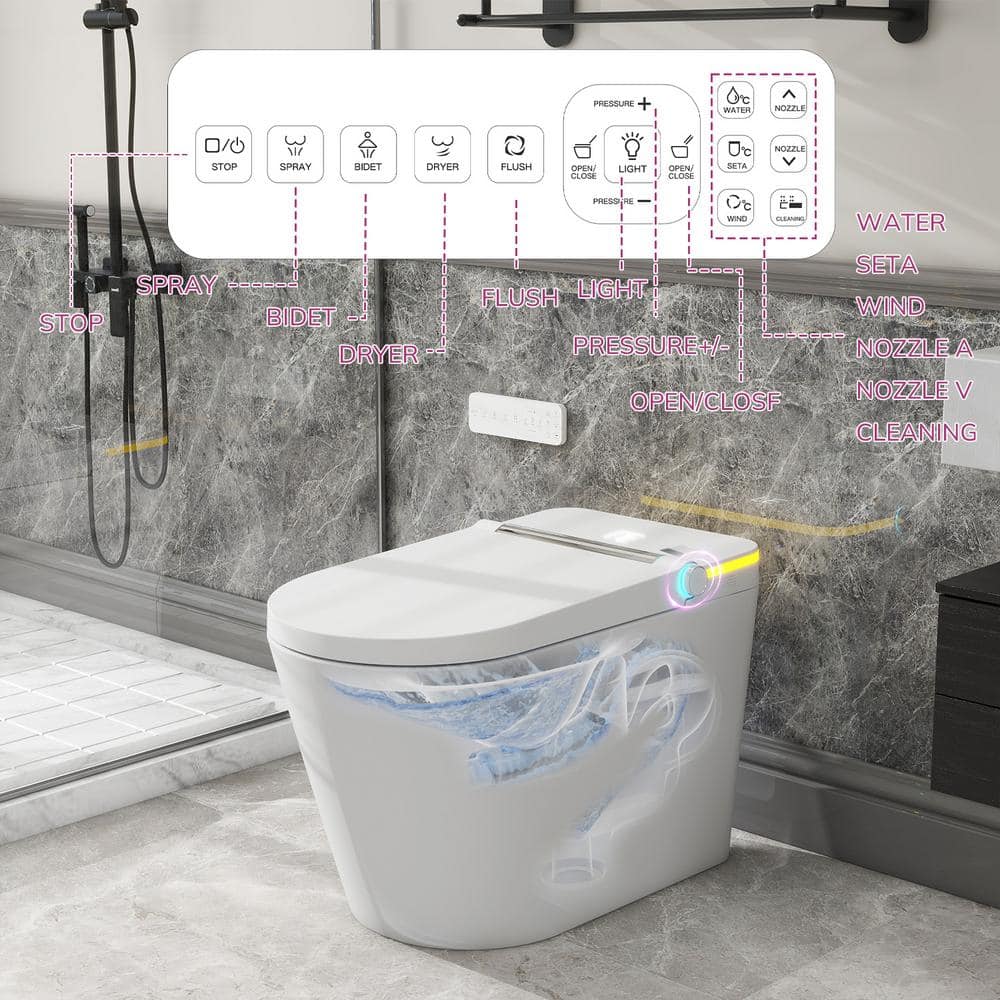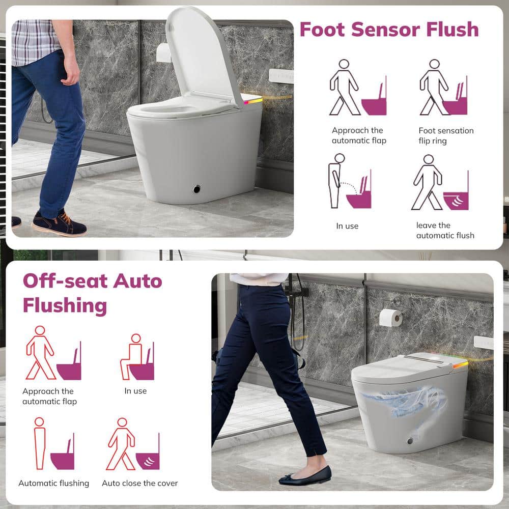 Relyblo Foot Sensor Smart Elongated Bidet Toilet in Glossy White with Adjustable Sprayer