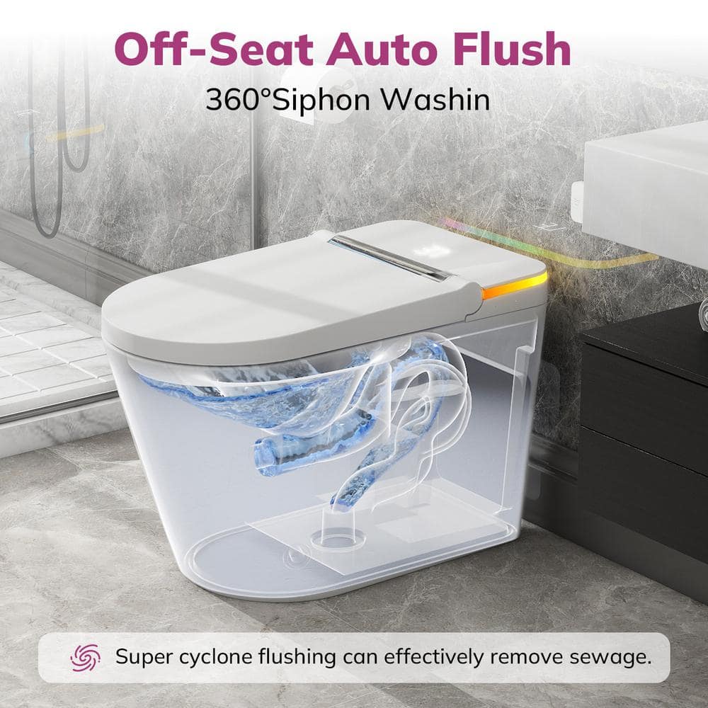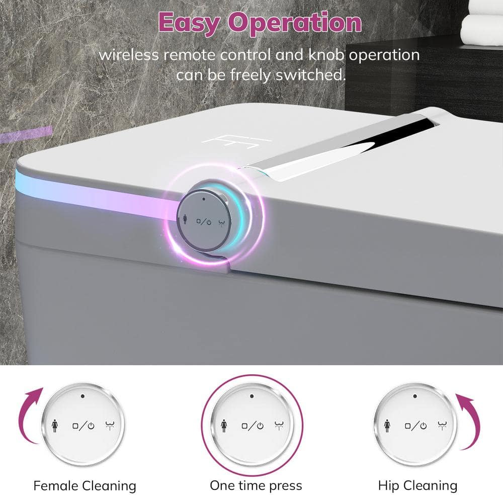 Imagine transforming your bathroom into a sanctuary of comfort and style with the Relyblo Smart Bidet Toilet. Its sleek design, infused with colorful LED lights, creates a futuristic ambiance that redefines luxury. The hands-free foot sensor complements any contemporary space, while the built-in aromatherapy elevates your daily routine into a sensory experience. This smart toilet is a must-have for those seeking the epitome of innovation and elegance in their home.