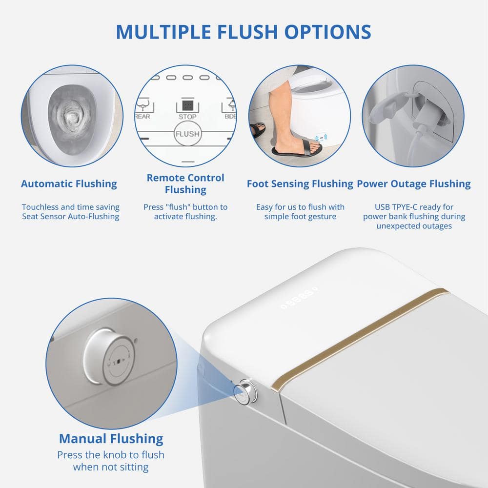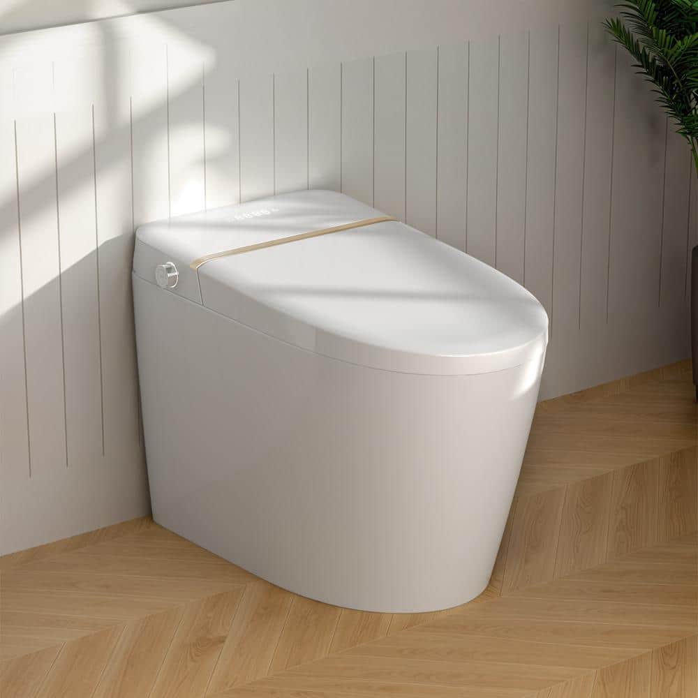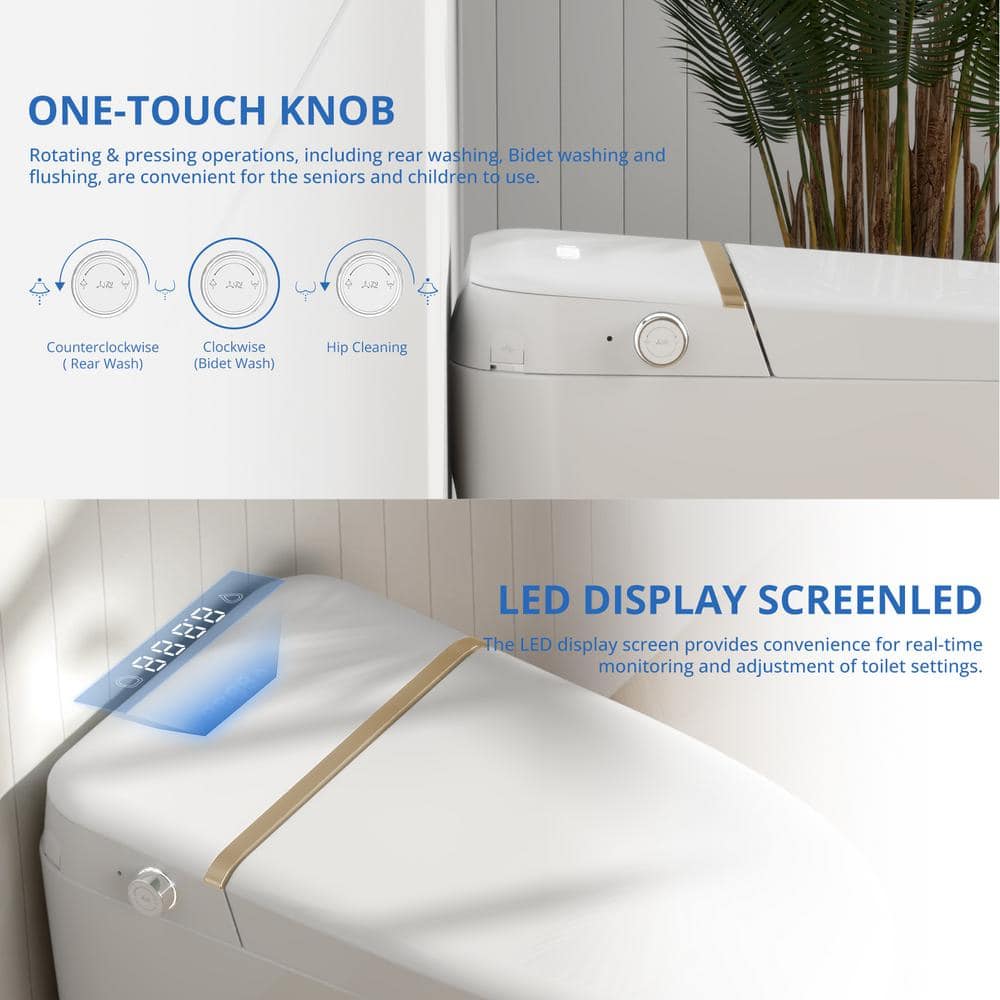 Relyblo Smart Elongated Bidet Toilet 1.27 GPF with Gold Edge White Finish