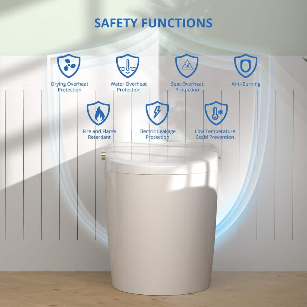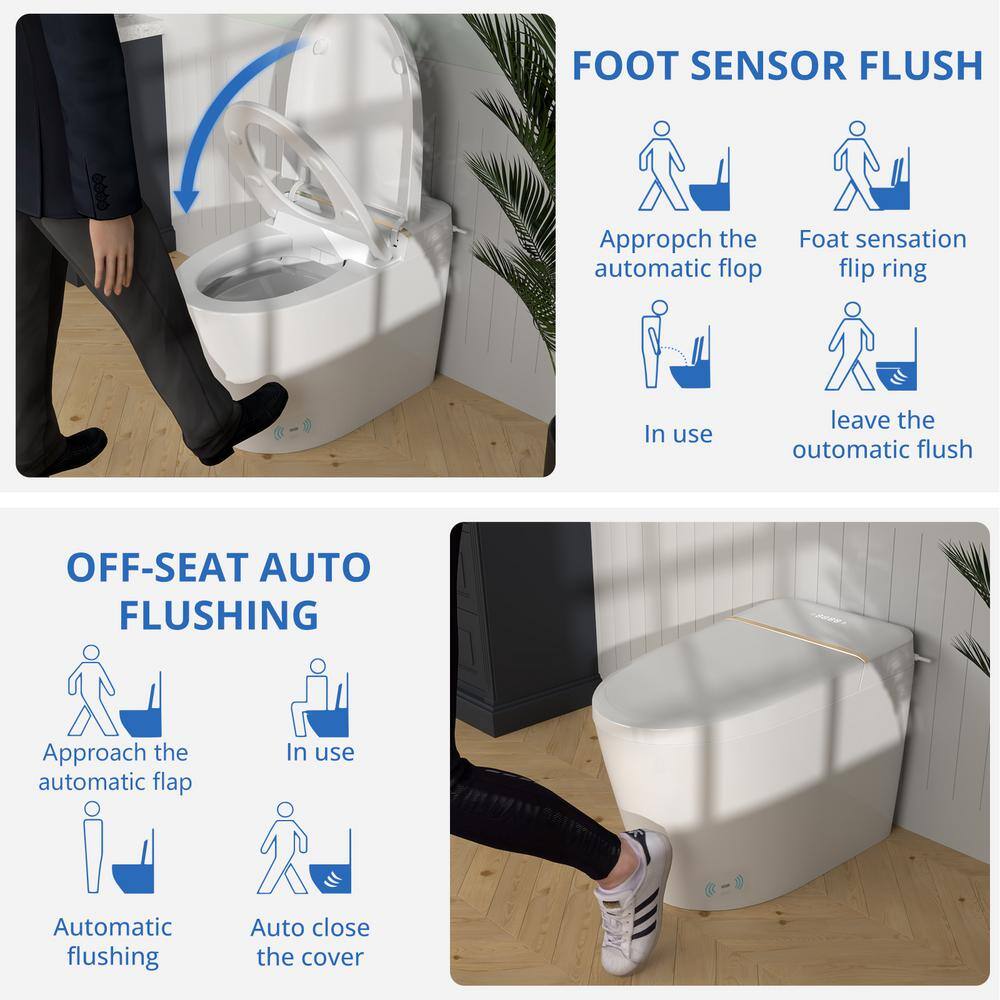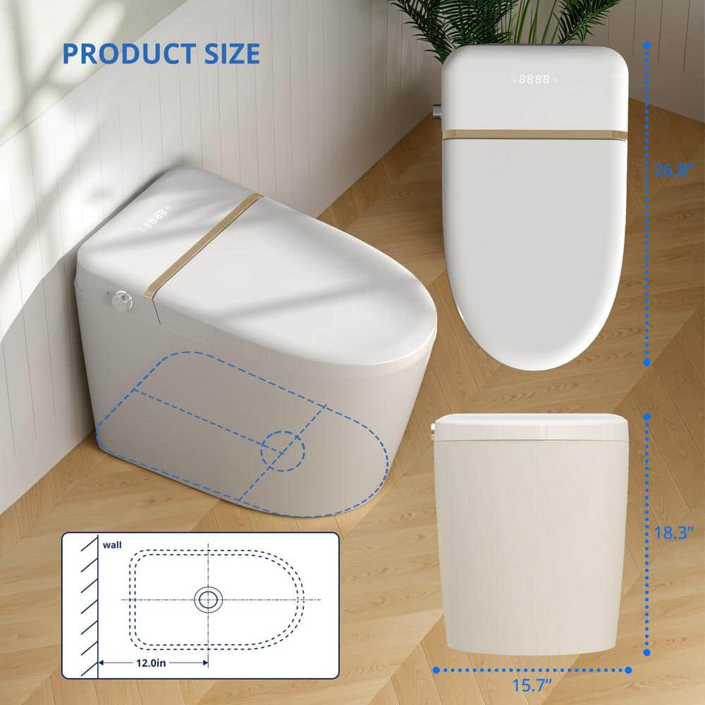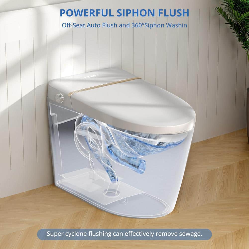 Relyblo Smart Elongated Bidet Toilet 1.27 GPF with Gold Edge White Finish