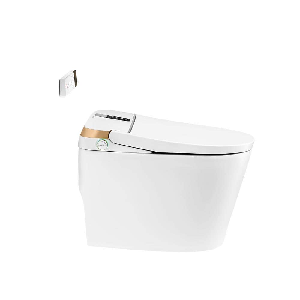 Staykiwi Elongated Bidet Toilet 1.28 GPF in White with Adjustable Sprayer Settings, Deodorizing, Soft Close