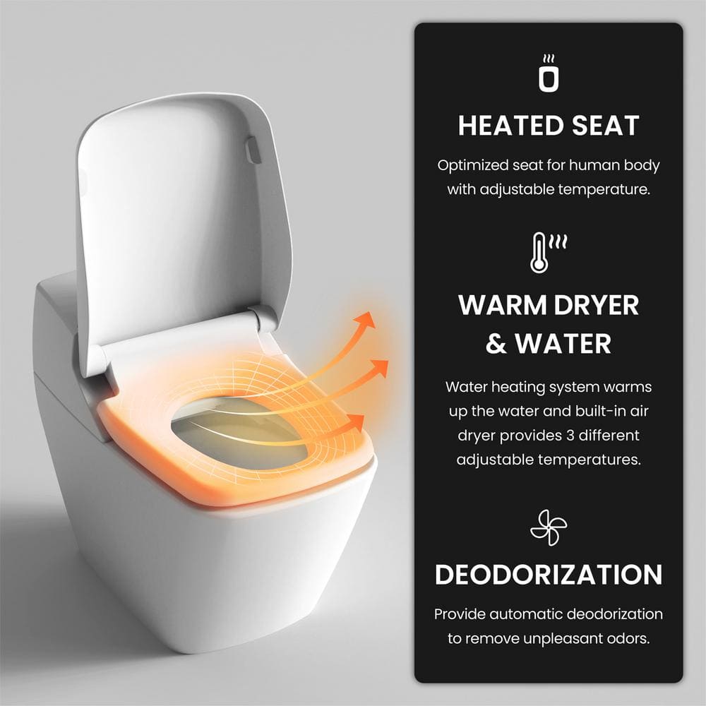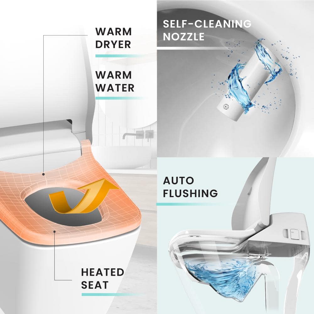 • Premium Comfort Features: Enjoy a heated seat, warm water, and air dryer for a luxury experience.