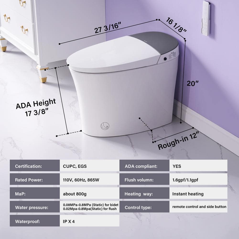 WELLFOR ARLO ADA Elongated LED Smart Bidet Toilet with Auto Open/Close/Flush
