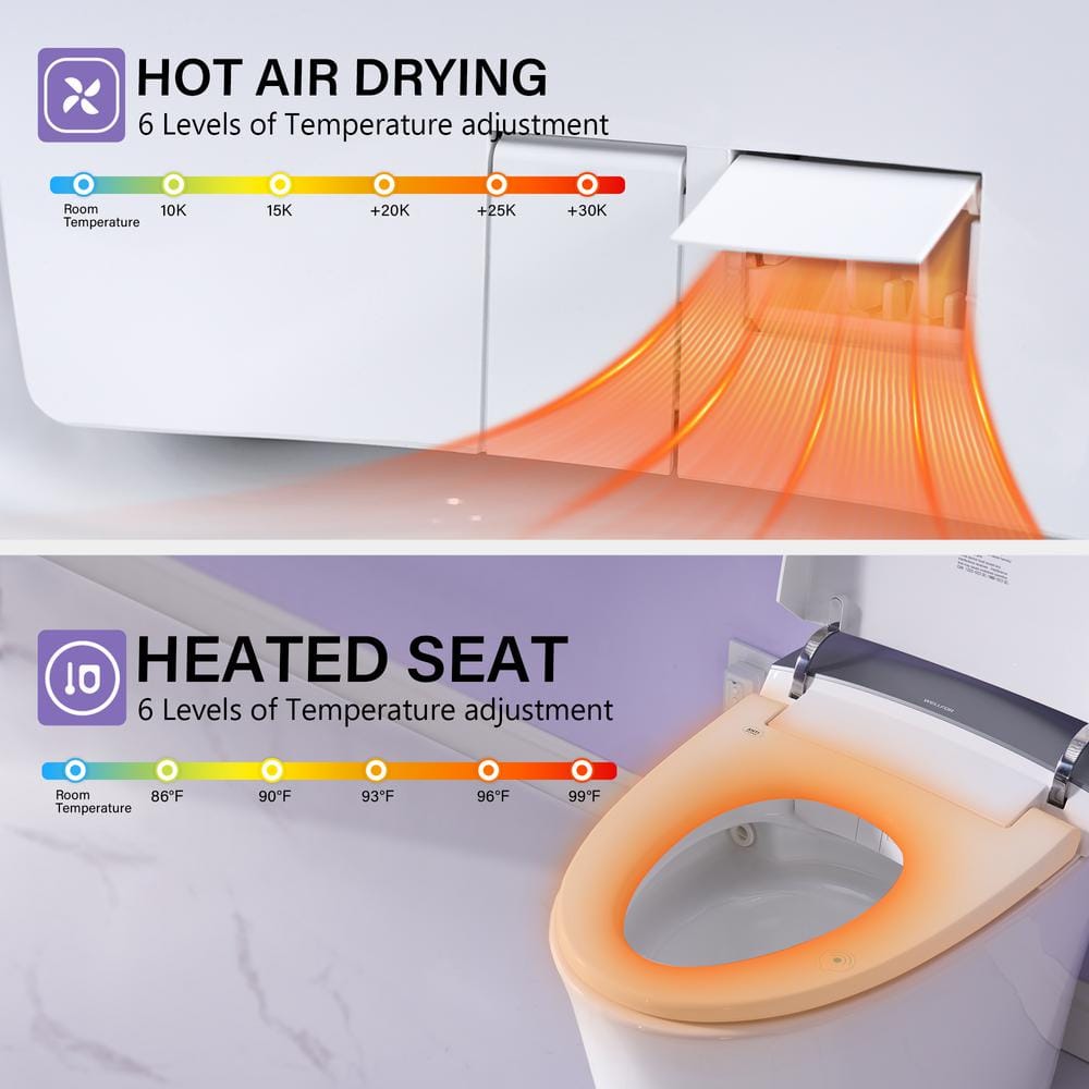 • Instant Heating: Provides warm water and heated seat with adjustable temperature settings for personalized comfort.
