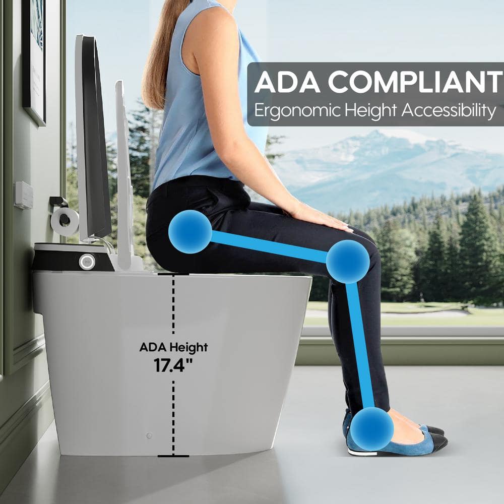 A: Yes, its elegant white design and compact dimensions make it suitable for various bathroom decor and sizes. ADA compliance also ensures accessibility for those with mobility challenges.