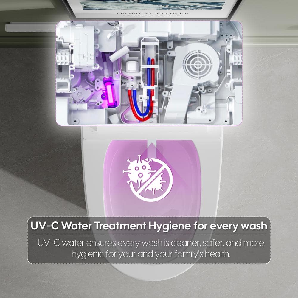 • Heated Seat & Dryer: Enjoy six temperature settings for unprecedented comfort and reduced need for toilet paper.