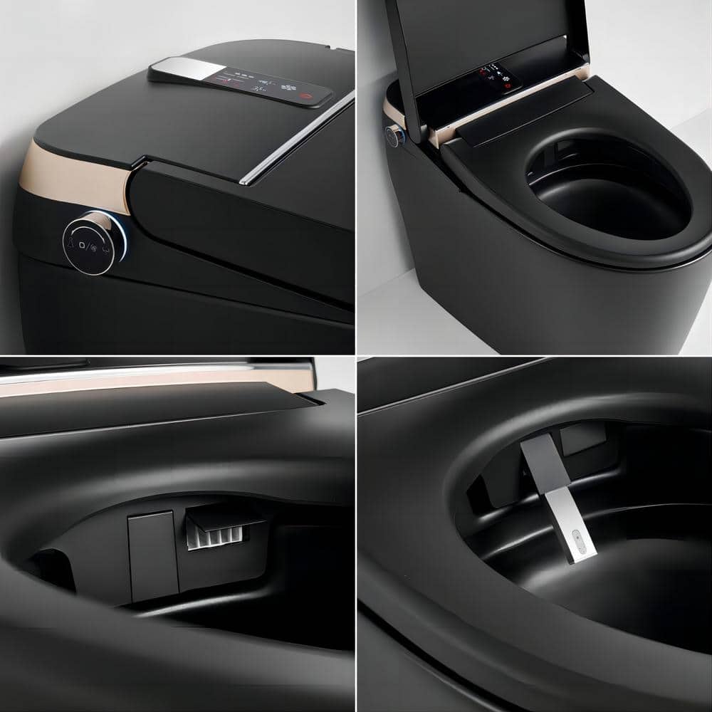 WELLFOR Smart Bidet Toilet 1.28 GPF Matte Black - LED Screen, Auto Functions, Heated Seat