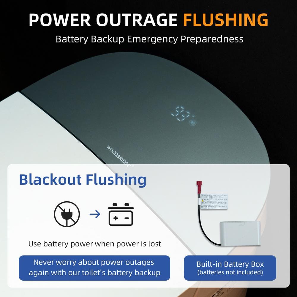 A: In the event of a power failure, the toilet includes a backup manual flush to ensure continuous functionality.