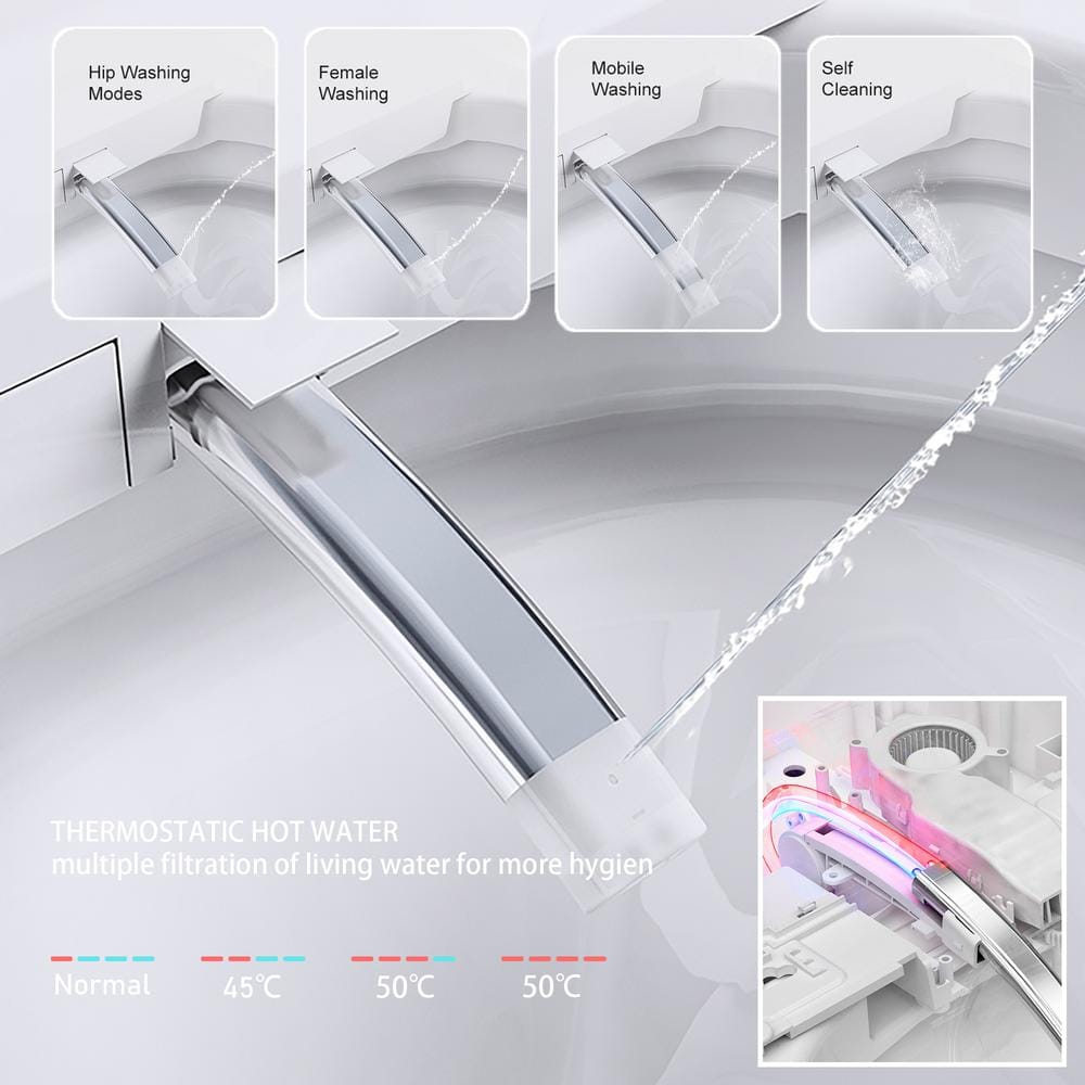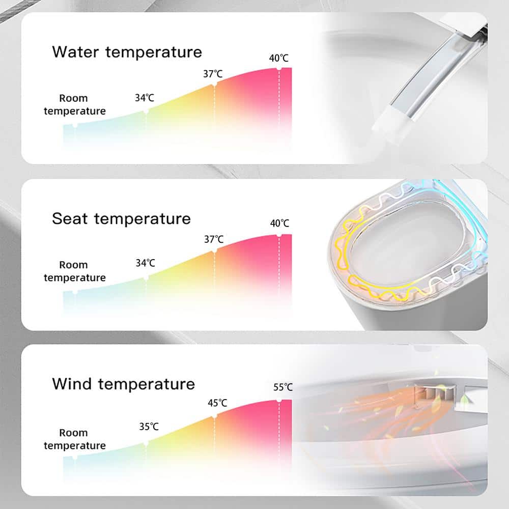 • Heated Comfort: Features a tankless thermostatic heating seat with multiple temperature settings.