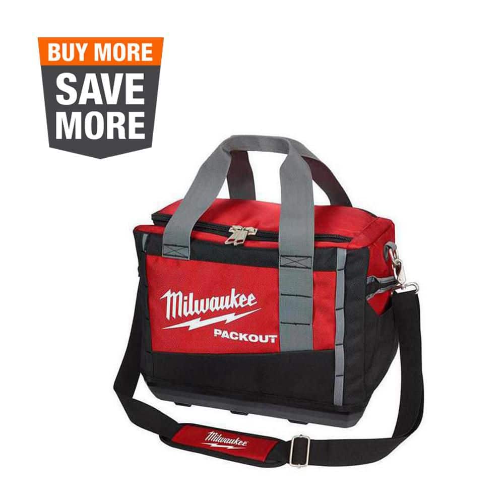 Rugged 15 in. PACKOUT tool bag built from 1680D ballistic material with an impact-resistant base for jobsite durability. Integrates with Milwaukee’s PACKOUT Modular Storage System and includes three heavy-duty zipper pouches for organized, quick-access storage.