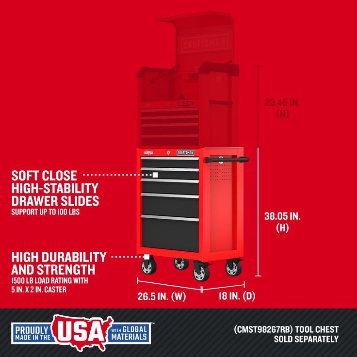 This Craftsman 2000 Series 26-in W x 36.5-in H 5-Drawer Steel Rolling Tool Cabinet (Red) is perfect for storing and organizing your tools. The 5 drawers provide ample space for all of your tools, while the steel construction ensures durability and longevity. With its rolling design, this cabinet allows for easy transportation and accessibility to your tools. Keep your workspace organized and efficient with this practical and sturdy tool cabinet.
