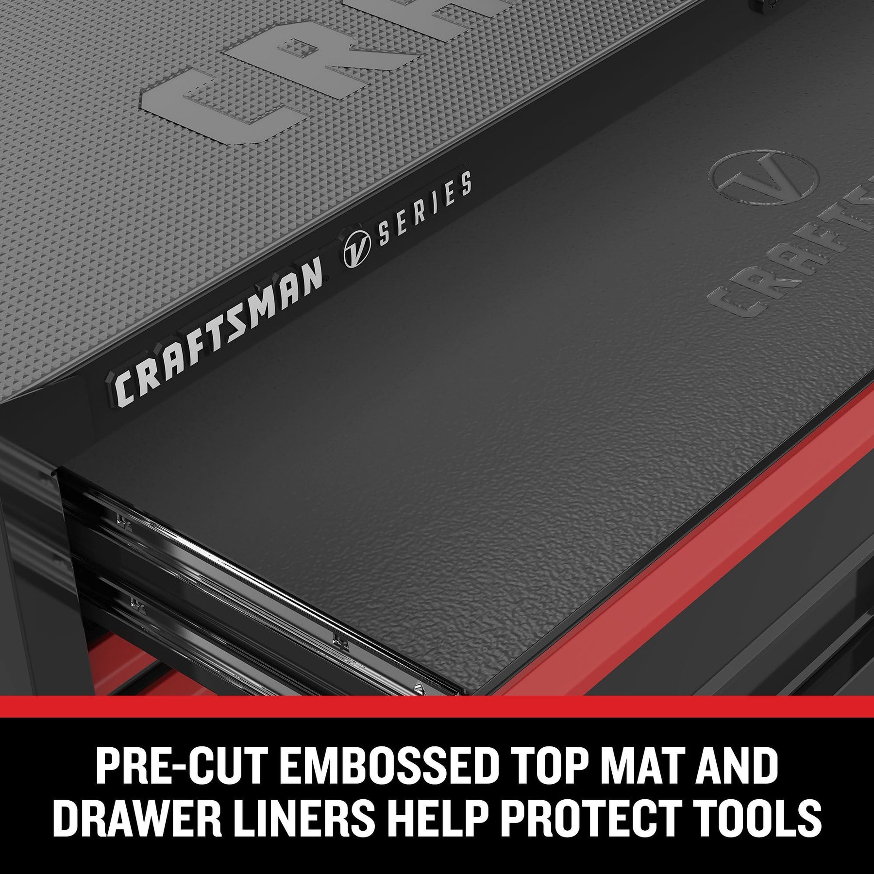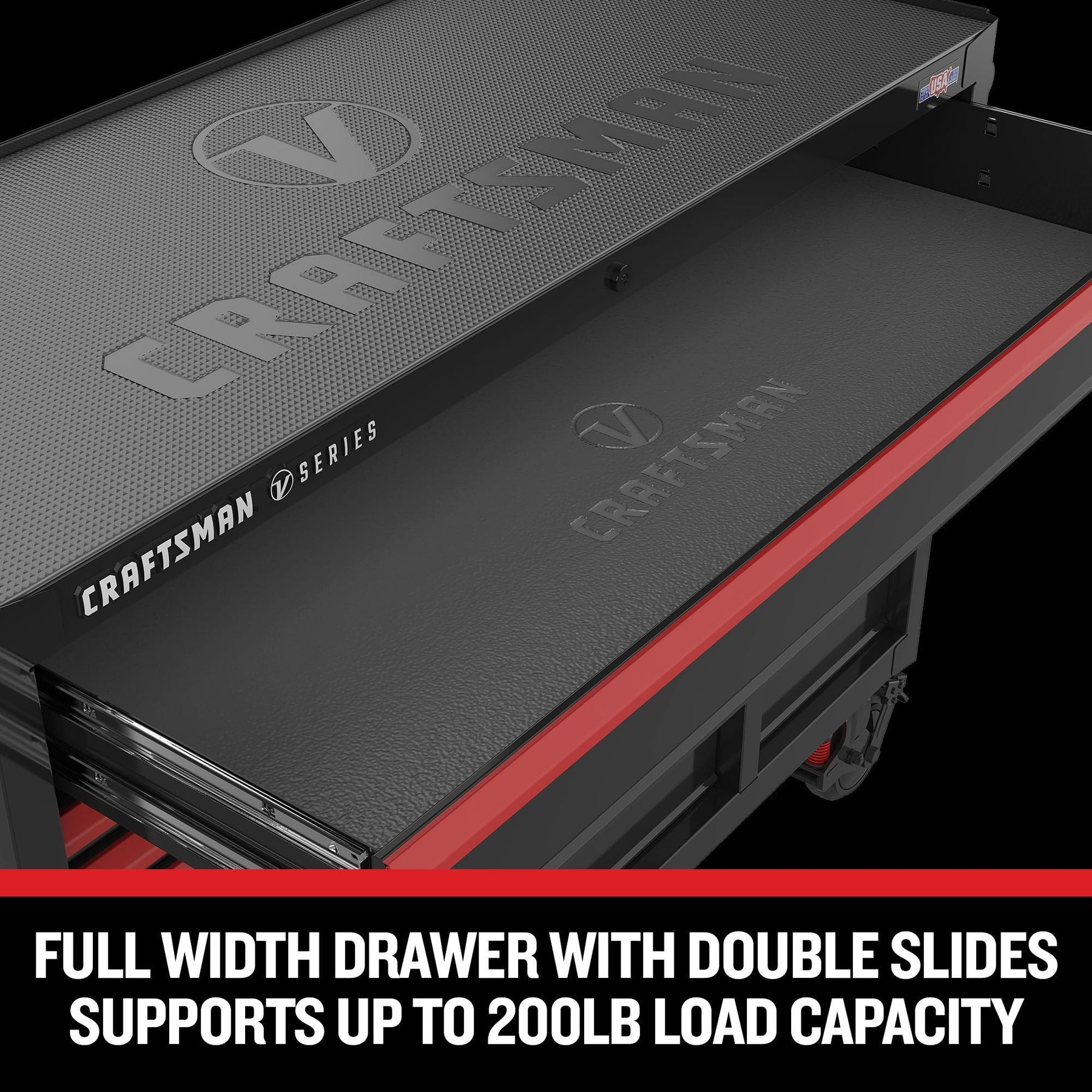 The CRAFTSMAN V-Series Rolling Tool Cabinet is more than just storage; it's a statement of efficiency and design. Its sleek black finish and robust steel construction make it a centerpiece in any workshop. The integrated power strip and soft-close drawers add a touch of modern convenience. Pair it with a matching top chest for a complete, professional-grade setup.