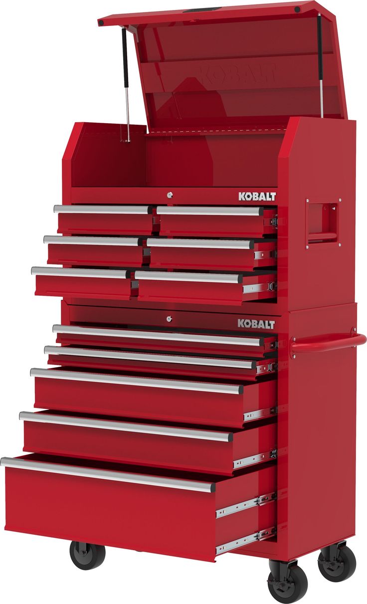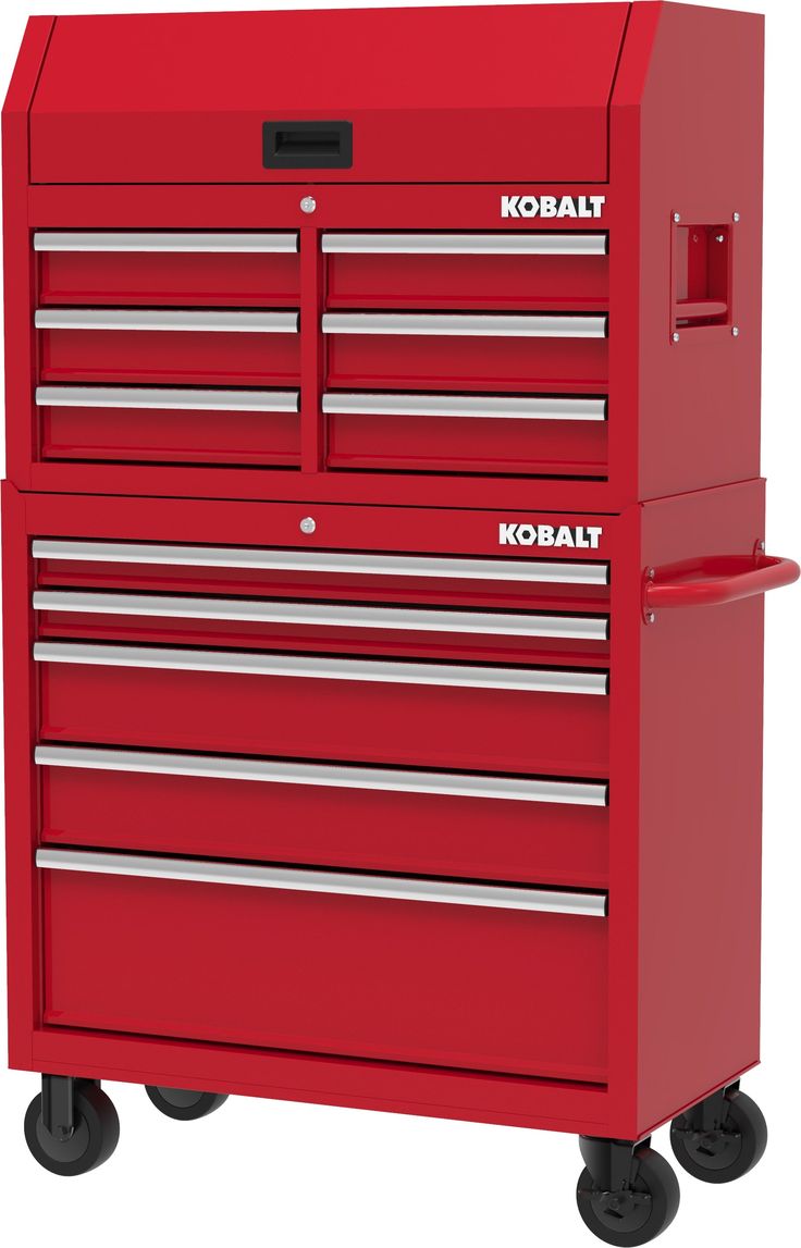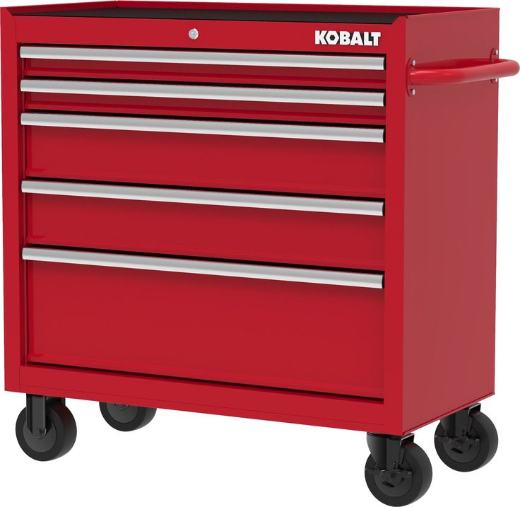 This Kobalt 36-in W x 38-in H 5-Drawer Steel Rolling Tool Cabinet (Red) is a professional-grade storage solution for your tools. With durable steel construction and five spacious drawers, you'll have everything you need easily organized and accessible. Its sleek red design adds a touch of style to any workshop.