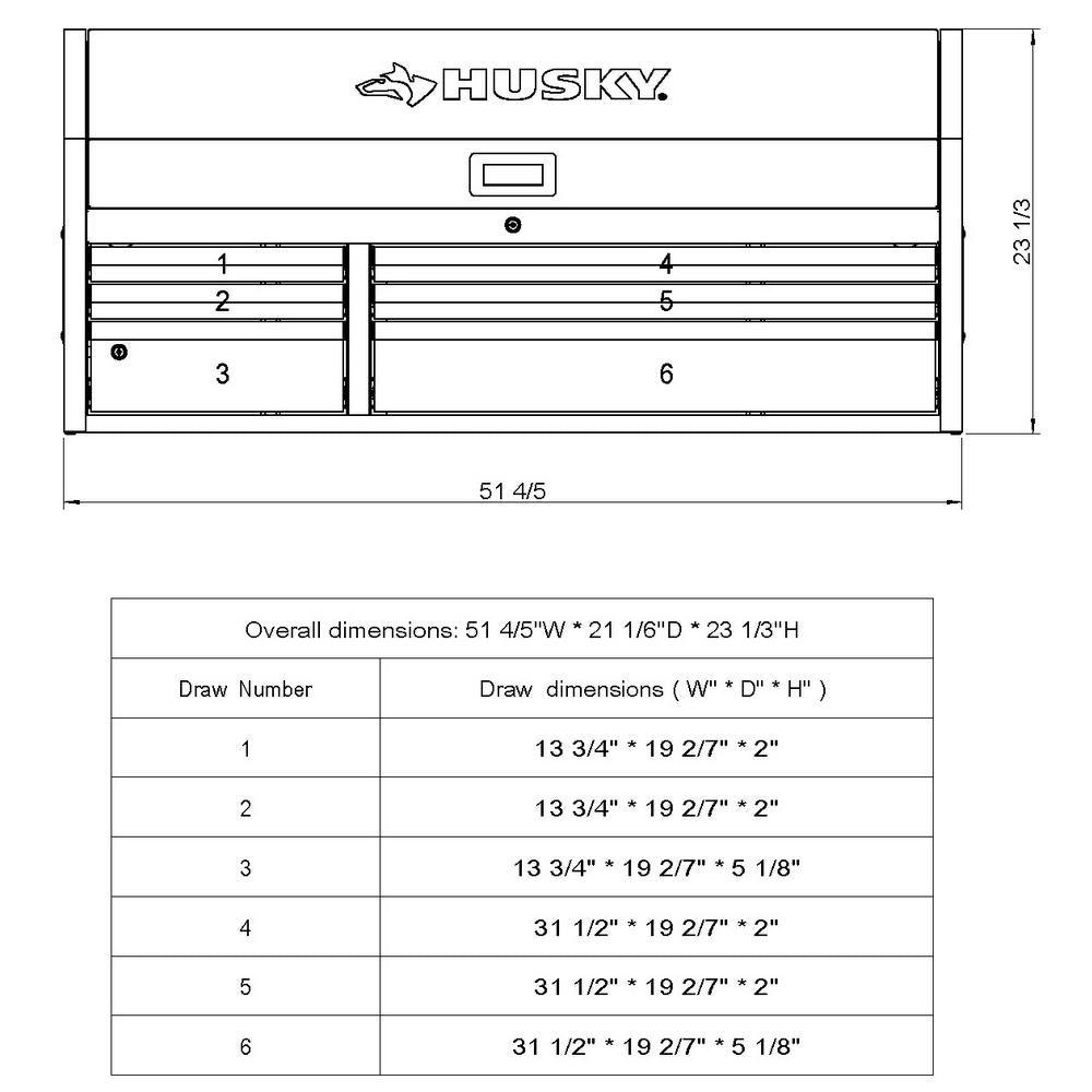 • Drawer dimensions: (2) small left drawers: 13.8 in. W x 19.3 in. D x 2.0 in. H (1) large left drawer: 13.8 in. W x 19.3 in. D x 5.1 in. H (2) small right drawers: 31.6 in. W x 19.3 in. D x 2.0 in. H (1) large right drawer: 31.6 in. W x 19.3 in. D x 5.1 in. H