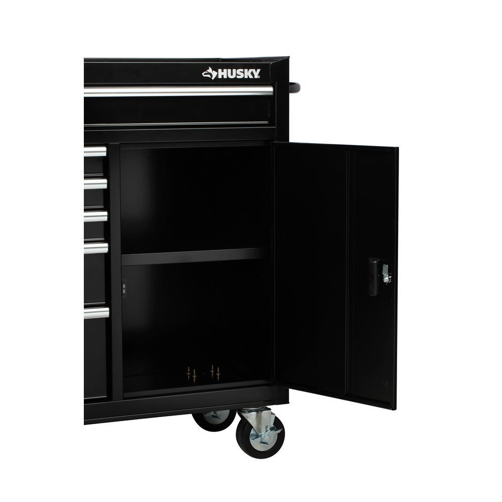 • Lockable bulk storage area in cabinet with adjustable shelf