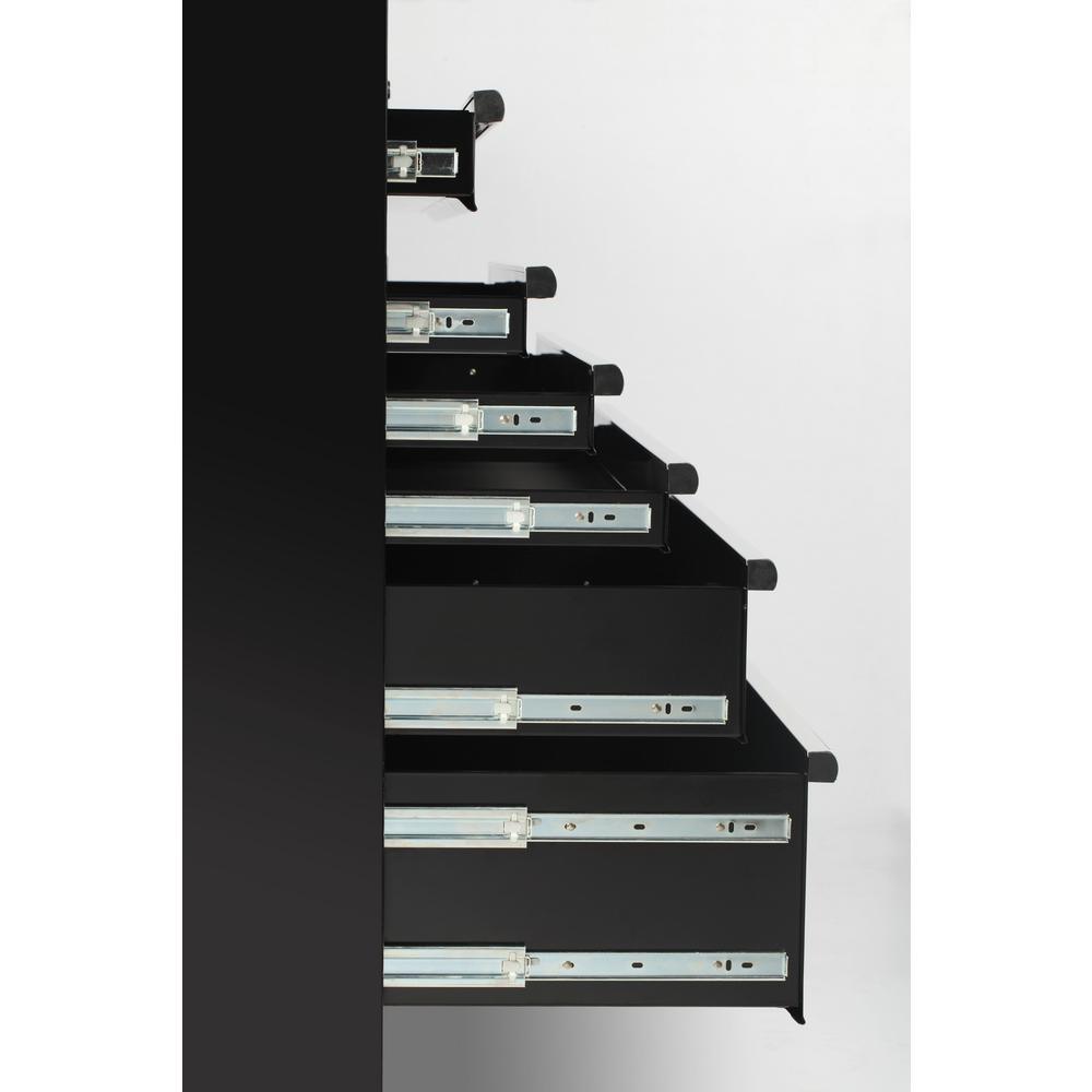 • Extra-large bottom drawer of cabinet is supported by a double set of slides, which provides storage of heavier and bulkier items