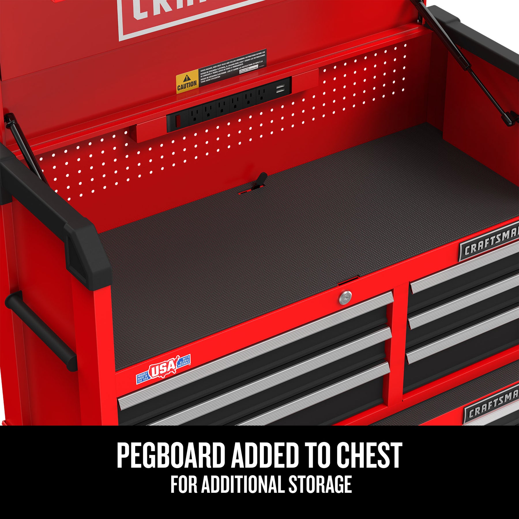 • Customizable Workspace: Pegboard back wall and embossed top mat with liners in every drawer