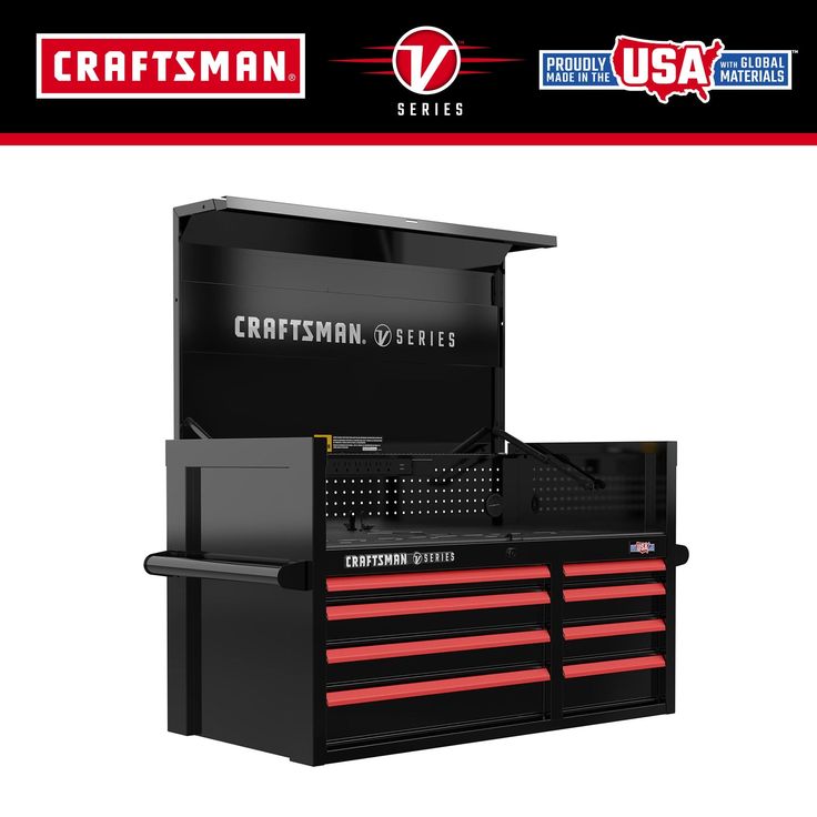 Elevate your workshop with the CRAFTSMAN V-Series 41-inch Wide x 27-inch High 8-Drawer Steel Tool Chest in sleek black. Proudly made in the USA with global materials in Sedalia, MO, this tool chest offers superior storage, organization, and protection for your tools. Designed for professional tradespeople and serious DIY enthusiasts, this tool chest combines robust construction with thoughtful design to keep your workspace efficient and your tools within reach.