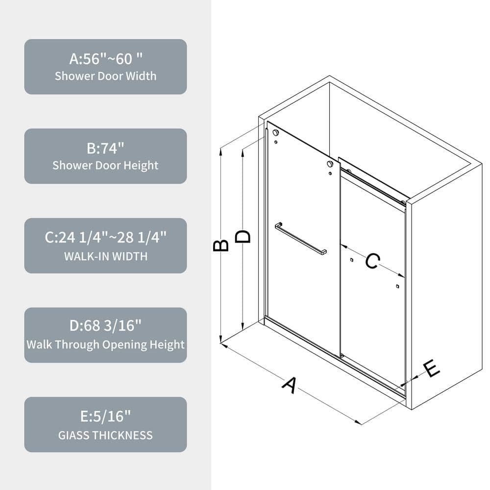 TOOLKISS 56 in.-60 in. W x 74 in. H Sliding Framed Shower Door in Chrome Finish with Clear Glass