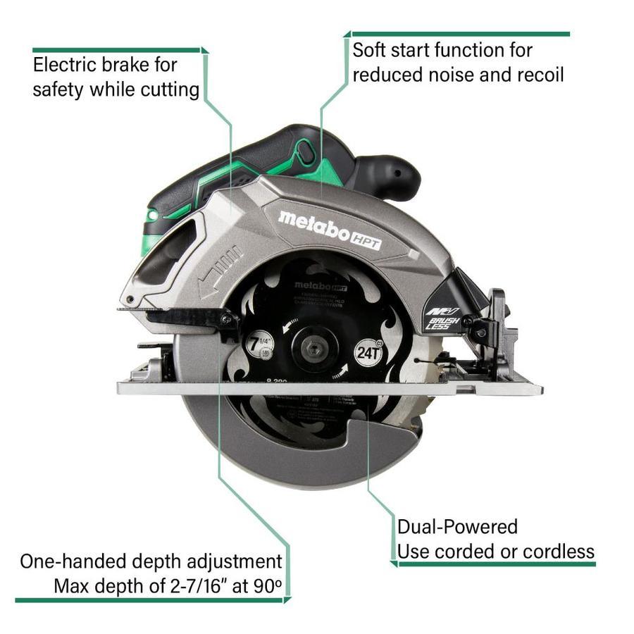 Metabo HPT (was Hitachi Power Tools) MultiVolt 36-Volt 7-1/4-in Brushless Hybrid Cordless and Corded Circular Saw with Brake and Aluminum Alloy Die Casting Shoe
