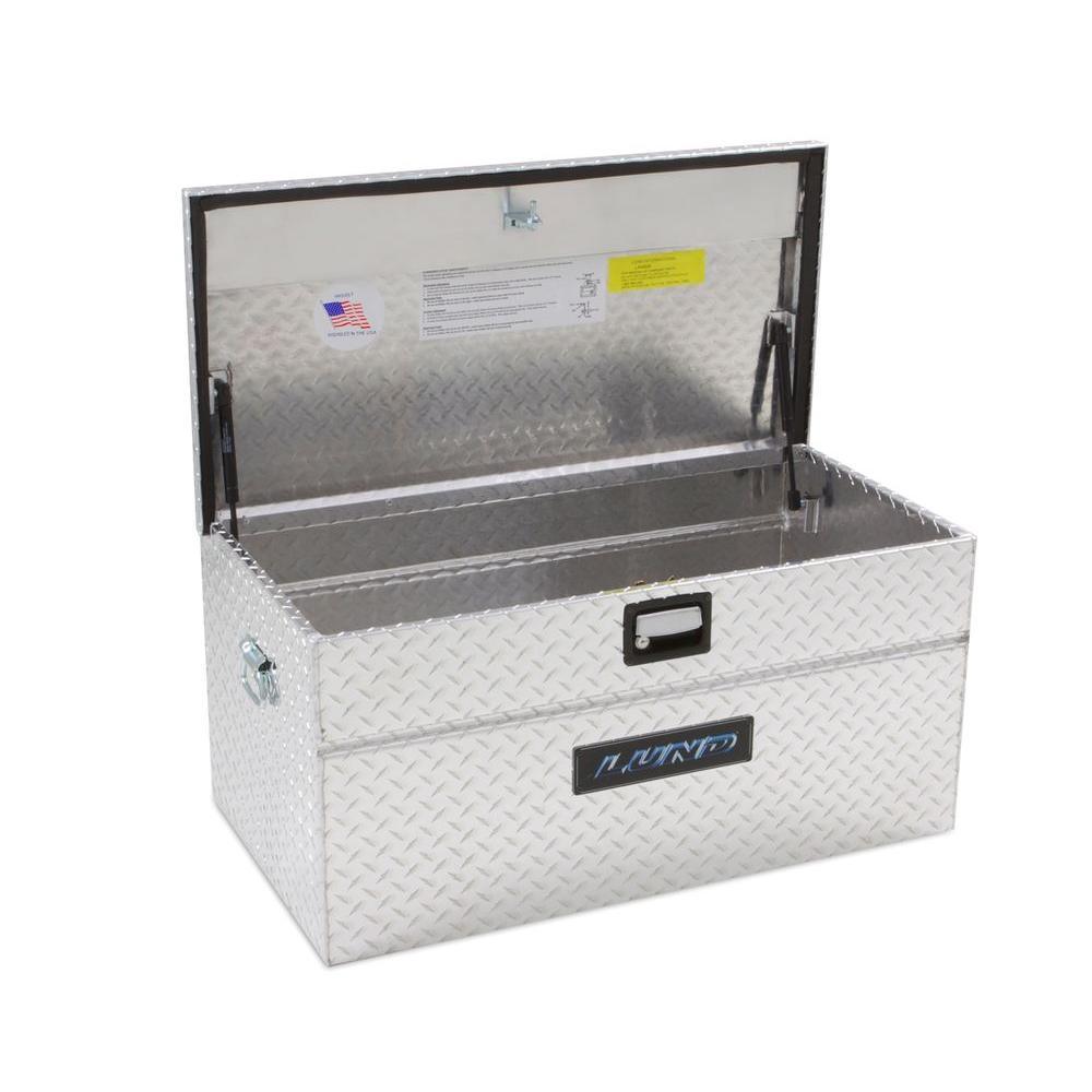 Lund 36 in Diamond Plate Aluminum Flush Mount Full Size Chest Truck Tool Box with mounting hardware and keys included, Silver