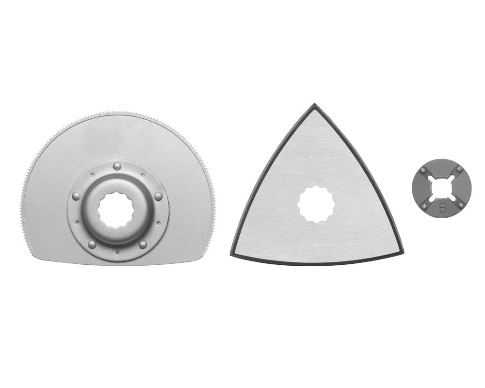 A: Typical multi-tool blades and sanding pads are used; select accessories may be included depending on package, but consumables vary.