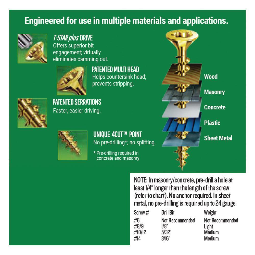 #8 x 1-1/4 in. T-Star Plus Drive Flat Head Partial Thread Yellow Zinc Multi-Material Screw (240 per Box)