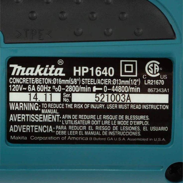 The Makita 5/8 in. Hammer Drill comes with a powerful motor. It can be used for rotation only applications or hammering with rotation applications. This hammer drill operates at 2,800 RPM and 44,800 BPM to help with most projects. The hammer drill is lightweight and can be held comfortably with its soft grip handle. This hammer drill has a large drilling capacity. It has a lock-on button for continuous usage.