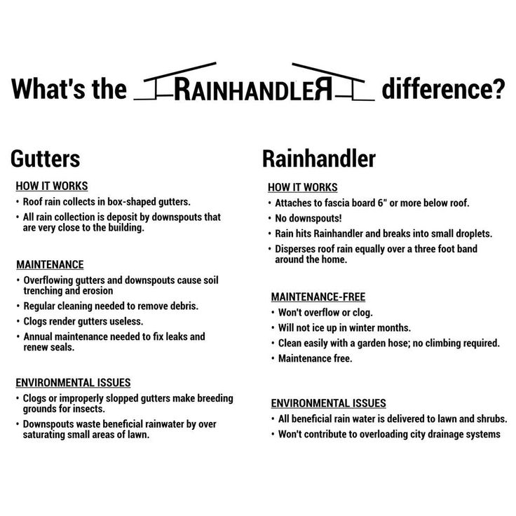 Rainhandler replaces conventional gutters and protects your home and the environment from the harmful effects of ice, snow, and rain. Snow and ice cannot build up because of the open louver design. Additionally, Rainhandlers mount below the roof slope and are unaffected by snow slides. As the rain comes off your roof, Rainhandler's seven angled louvers break up the heavy sheet of water into small drops. These drops are deflected away from your home where they fall harmlessly to the ground in a 2 to 3 ft. band.