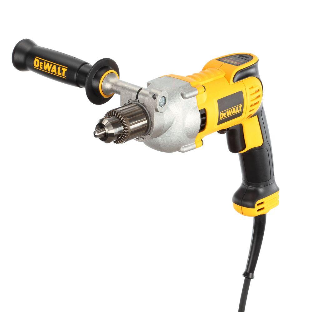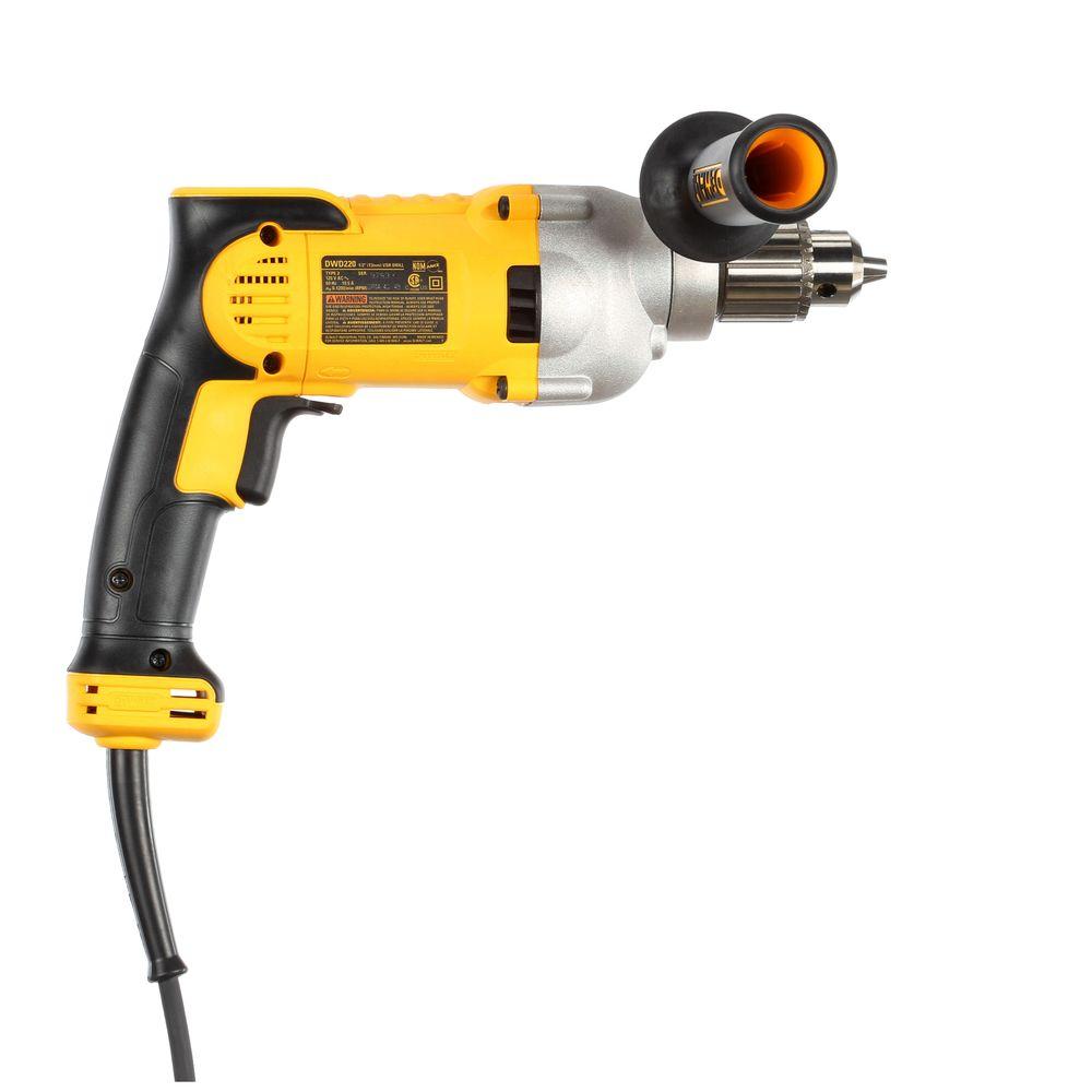 The DEWALT 1/2 in. VSR Pistol Grip Drill with E-Clutch Anti-Lock Control has a 10.5 Amp DEWALT-built motor that delivers superior drilling with overload protection for added durability. Featuring 0-1200 RPM and a variable speed reversing switch so you can match the speed to your application, this tool's E-Clutch system shuts the tool off when a stall is detected, reducing reactionary torque in bind-up situations. Comfortable to use and easy to control with a soft grip handle and 2-finger trigger, the metal gear housing helps ensure jobsite durability for long-lasting use and reliability.