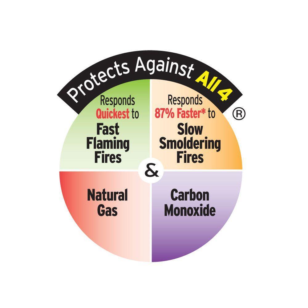 Hardwired, 4-In-1 Smoke, Fire, Carbon Monoxide & Natural Gas Detector, Battery Backup, Microprocessor Intelligence