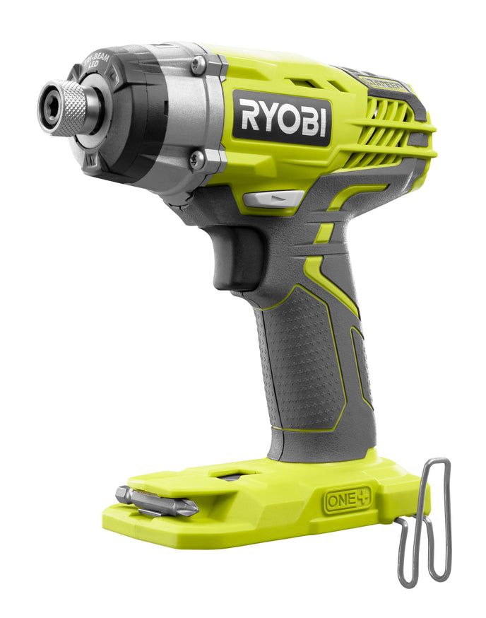 RYOBI introduces the 18-Volt ONE+ Cordless 3-Speed 1/4 in. Hex Impact Driver. This 1/4 in. Hex Impact Driver features three torque speed settings to fit your various fastening needs. On high speed, this impact driver produces 1800 in./lbs. of torque, and its unique impact mechanism drives long deck screws or large lag screws with ease. You'll be able to get through all your projects in no time with this efficient, convenient, and comfortable design featuring the GRIPZONE overmold to ensure a solid grip and the handy MAGTRAY to hold bits and screws while you work. Best of all, it is part of the RYOBI ONE+ System of over 175 Cordless Tools that all work on the same battery platform. Backed by the RYOBI 3-Year Manufacturer's Warranty, this 18-Volt ONE+ 3-Speed 1/4 in. Hex Impact Driver includes a belt clip, a Phillips bit, and an operator's manual. Battery and charger sold separately.