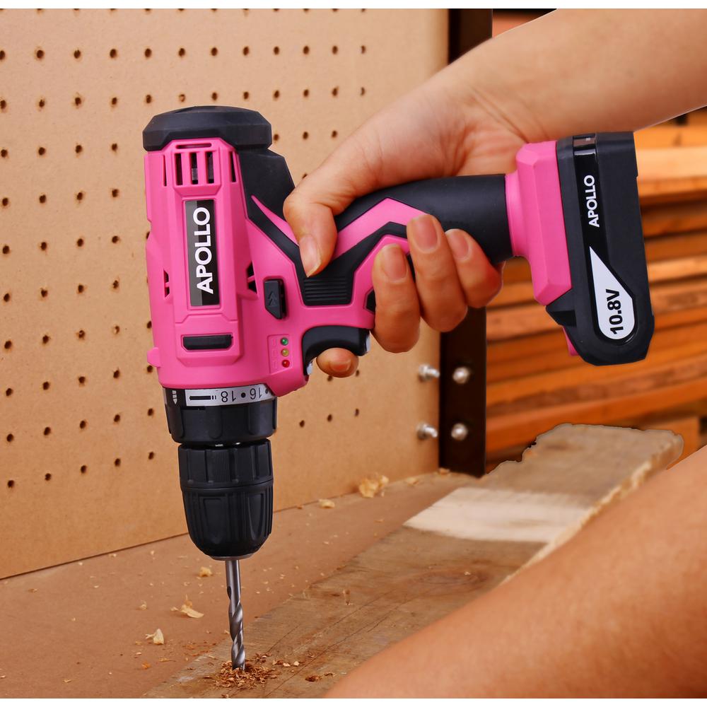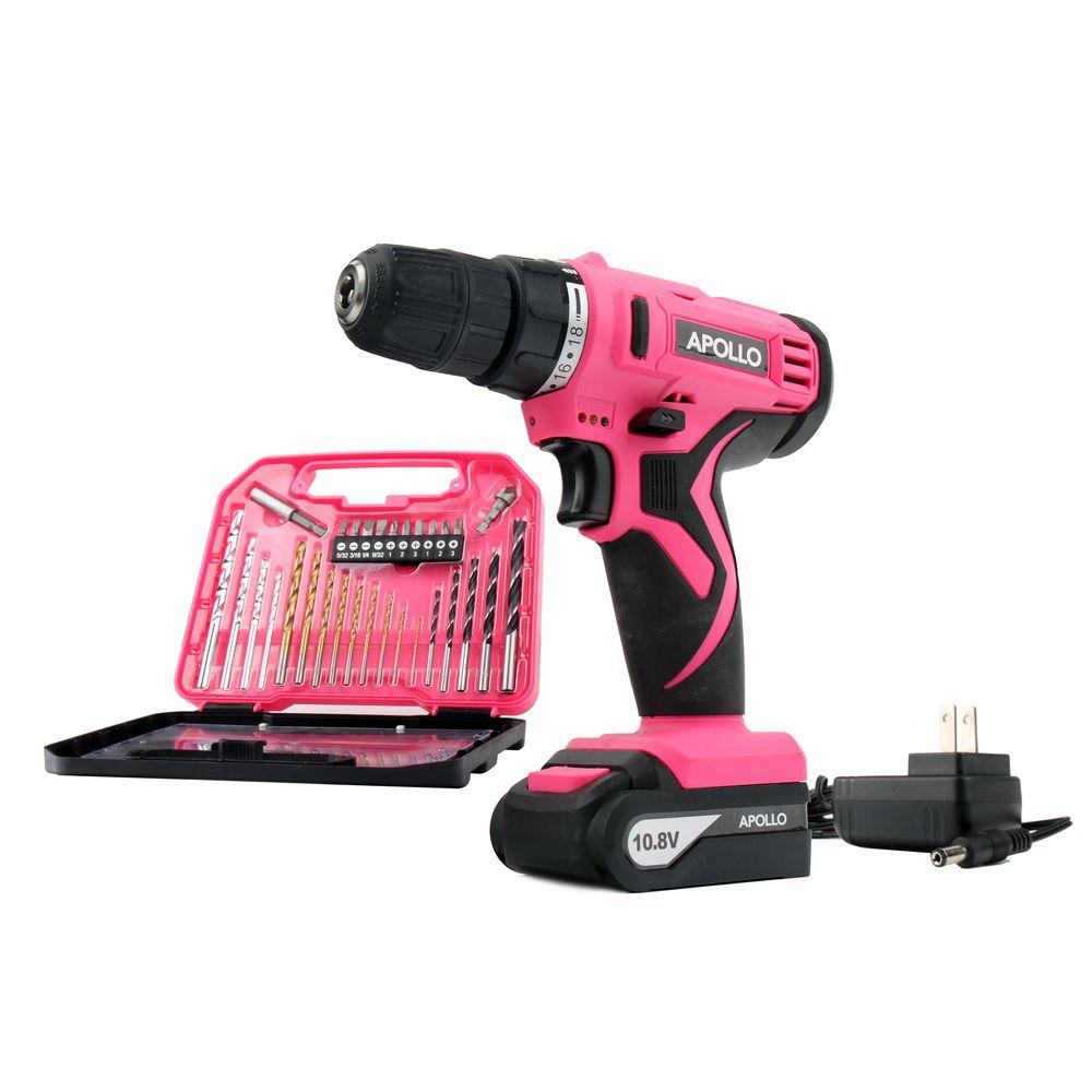 Apollo Tools 10.8-Volt Lithium-Ion 3/8 in. Pink Cordless Drill with 30-Piece Accessory Set
