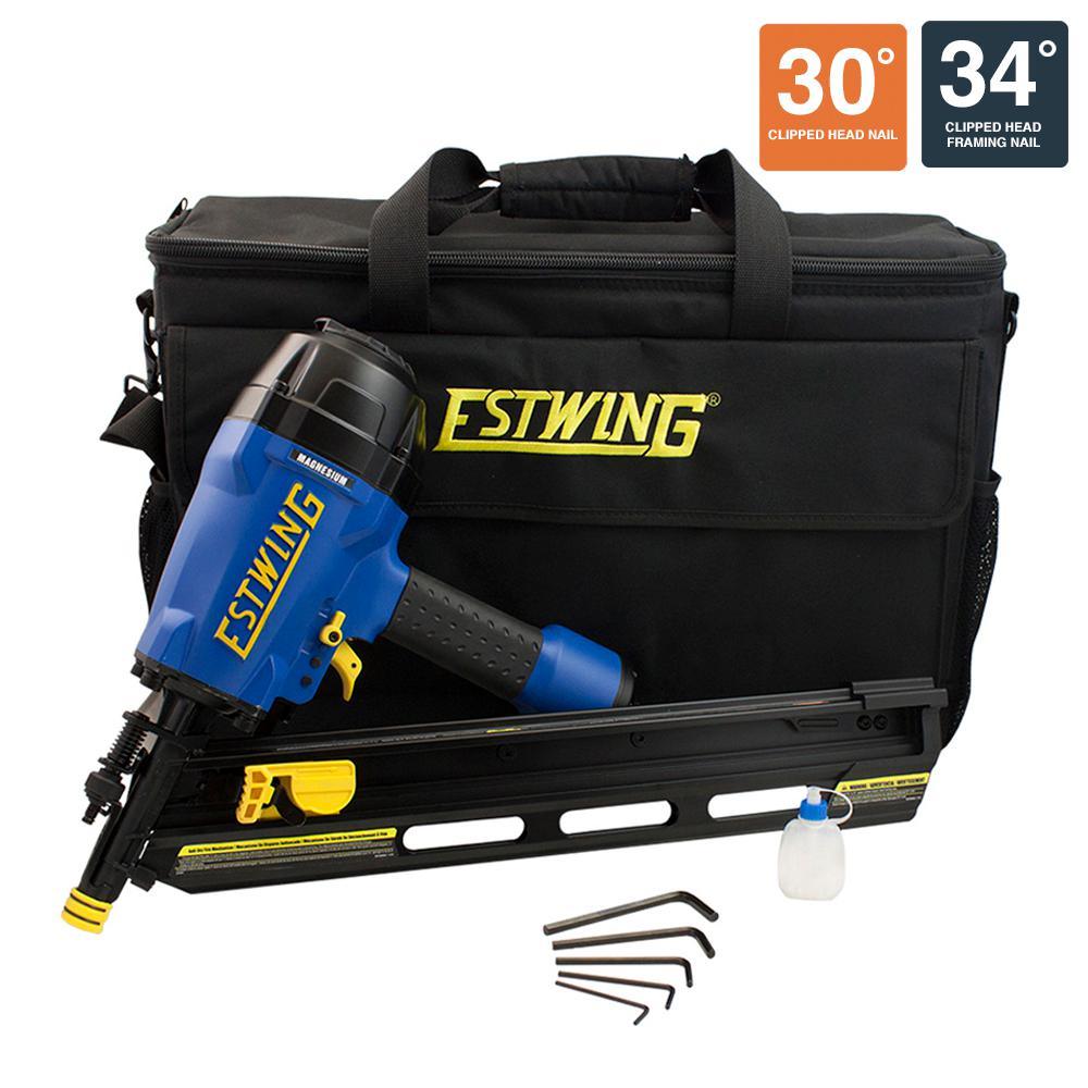 Pneumatic 34 degrees Clipped Head Framing Nailer with Padded Bag