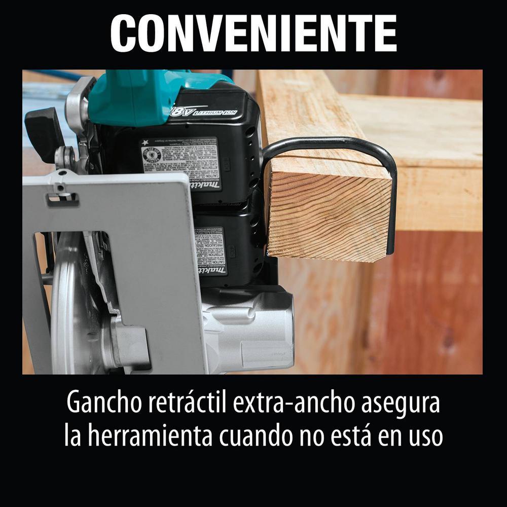 Makita, a pioneer in brushless motor technology and battery innovation, combines both in the 18V X2 LXT (36V) Lithium-Ion Brushless Rear Handle 7-1/4 in. Circular Saw (XSR01PT). It's powered by two 18V LXT Lithium-Ion batteries for maximum performance and has an electronically controlled BL Brushless motor that matches torque and RPM to the application. Makita 18V X2 means freedom from the cord, even for demanding applications like cutting sheet and dimensional lumber that traditionally called for a corded saw. Best of all, users can remain in one battery platform, using the same fast-charging 18V batteries with the XSR01PT as they use across the expansive Makita 18V LXT cordless tool series. The XSR01PT has a long list of features for efficient cutting without the cord. Users of leading corded saws will appreciate the blade-left rear-handle design. The electronically controlled brushless motor delivers a full 5,100 RPM for efficient cutting. In internal testing, the XSR01PT made up to 558 crosscuts per charge in 2x4 SPF lumber using two fully-charged 5.0Ah batteries. Added features include a large 2-9/16 in. cutting capacity at 90 ° that will cut 3X lumber in a single pass, and an electric brake for maximum productivity. The saw has a die-cast magnesium base and blade guard with die-cast aluminum blade cover and motor housing, which combines durability with less weight (only 12.4 lbs. with batteries).